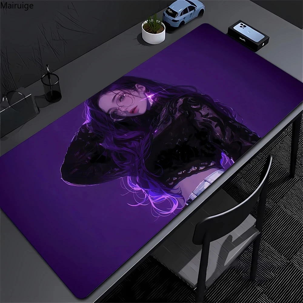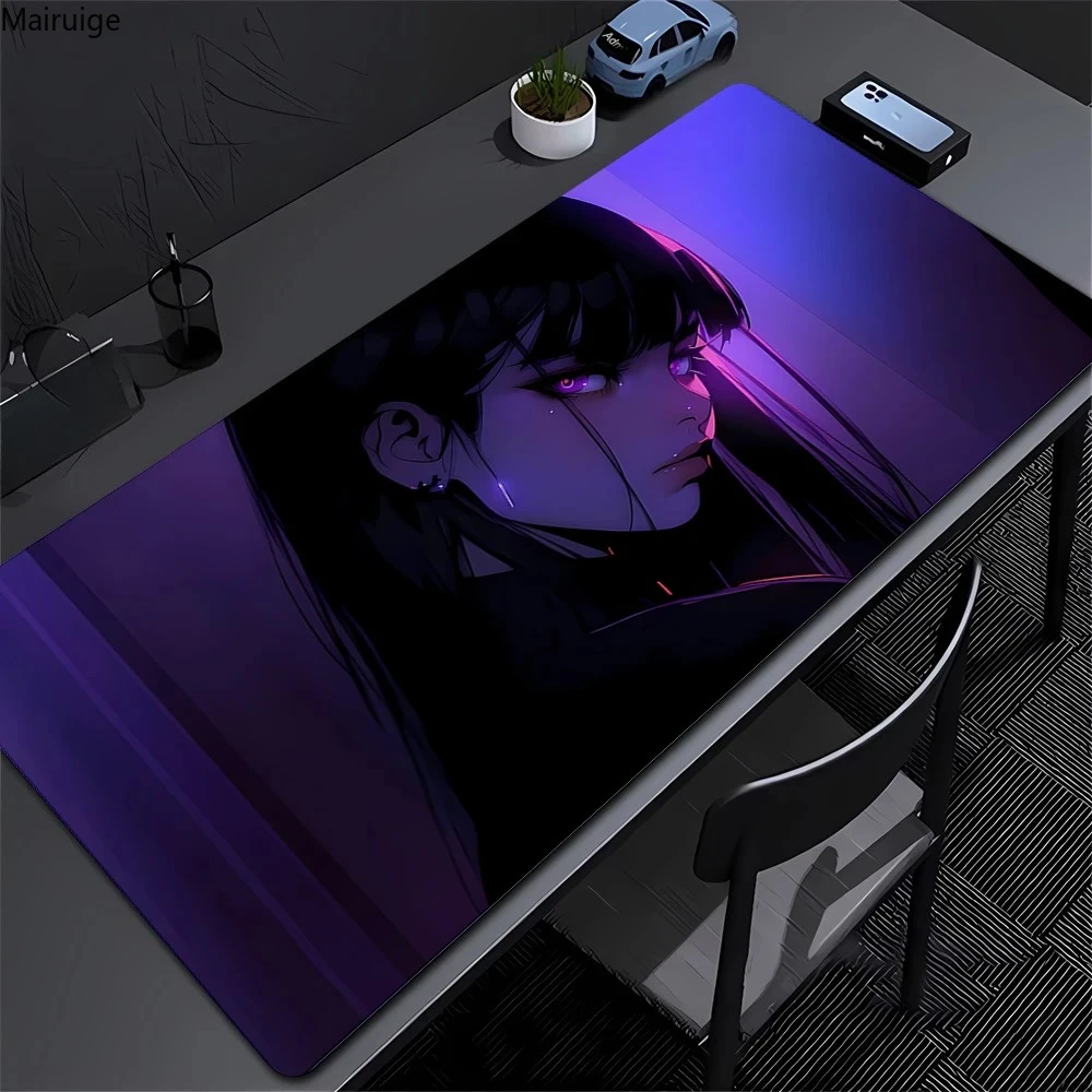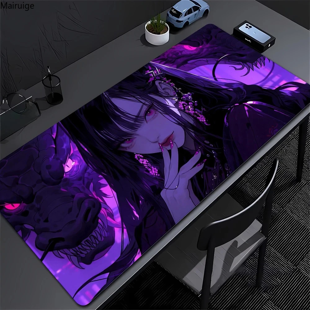 Comprar Alfombrilla de ratón púrpura Kawaii Anime Girl de 90x40cm, accesorios para juegos de ordenador portátil XXL, alfombra antideslizante con borde de bloqueo lavable