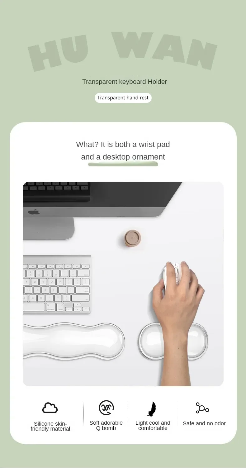 Alfombrilla de ratón con reposamuñecas, reposamuñecas para escritorio, consola de juegos de oficina, reposamuñecas transparente de silicona antideslizante
