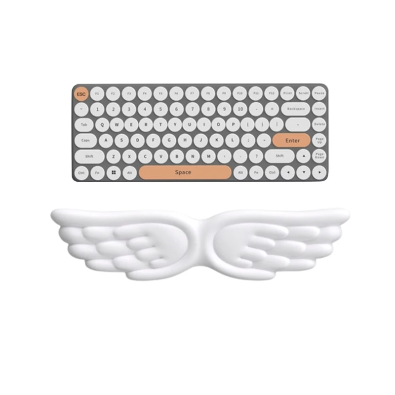 El reposamuñecas "Angel" es compatible con la mayoría de los diseños de portátiles, ordenadores y teclados para juegos. Se mantiene en su lugar con su base de silicona antideslizante, asegurando la estabilidad y evitando cualquier movimiento no deseado.