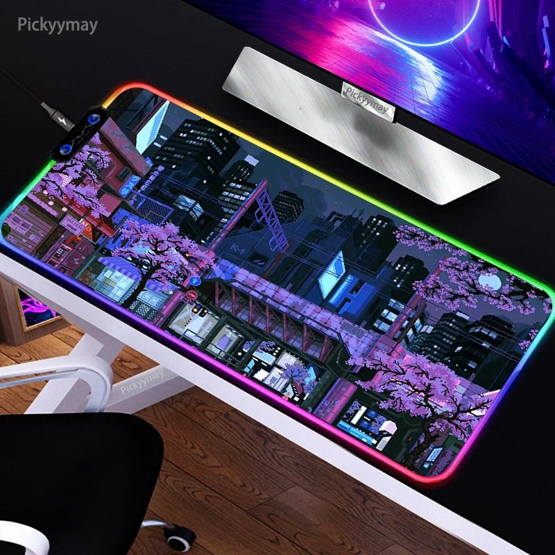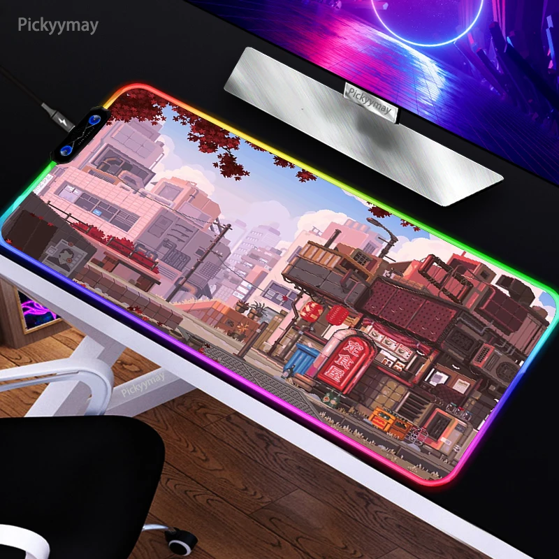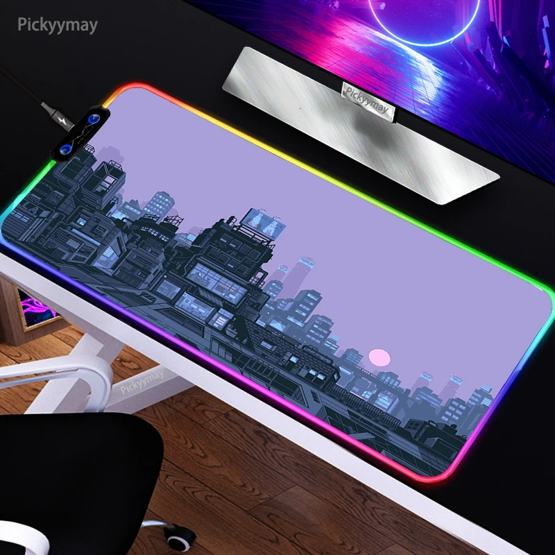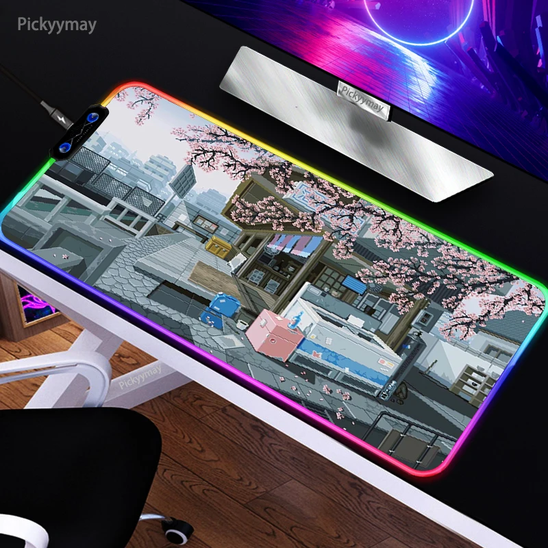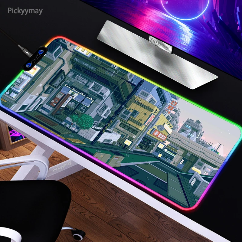 Comprar Alfombrilla de ratón RGB para teclado de ordenador, alfombrilla de escritorio de Arte de píxeles, LED retroiluminada para PC, alfombrilla de juegos
