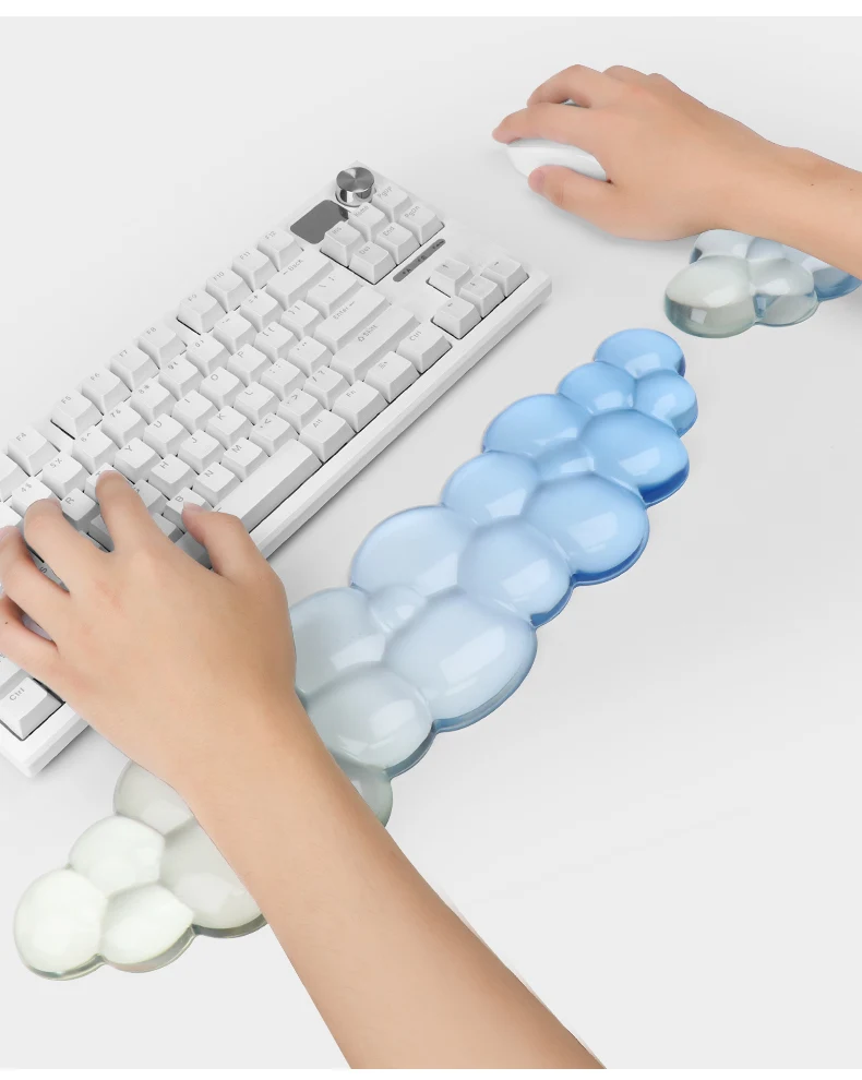 Tiene un efecto transparente pero violeta. Cuando lo presionas, se siente como si estuvieras envuelto en plastilina.