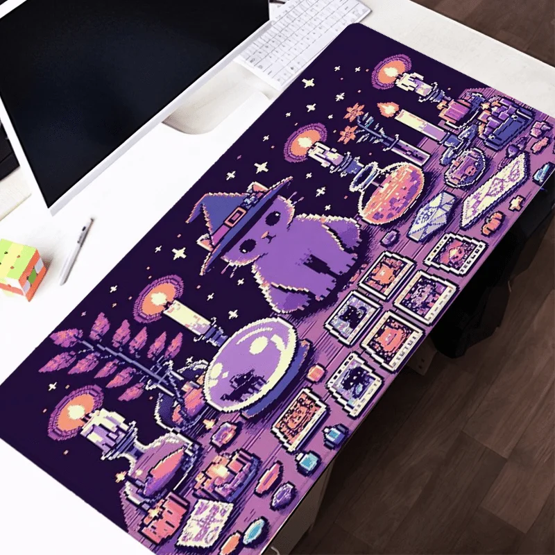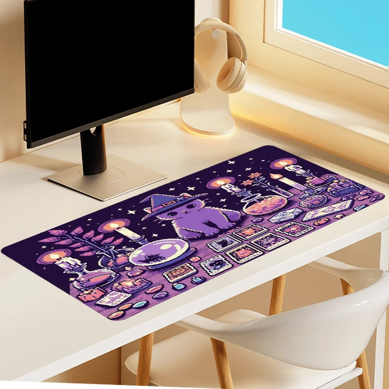 Comprar Alfombrilla de ratón XXL Purple Magic Cat, diseño de cartas de Tarot, accesorios de juego de 35,4x15,7 pulgadas, adecuada para deportes electrónicos, oficina y uso doméstico