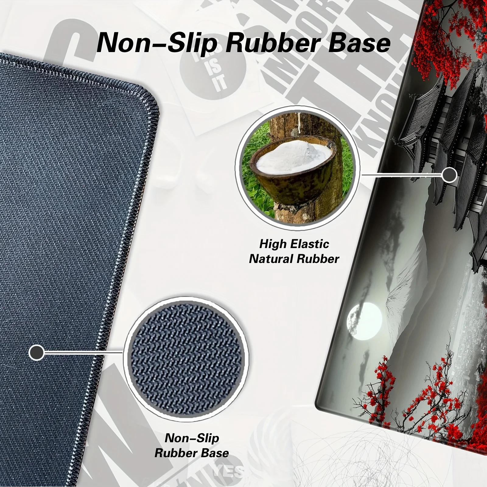 Base de goma antideslizante: el sombreado denso y la base de goma natural antideslizante pueden sujetar firmemente la mesa.El material suave de primera calidad le brinda comodidad y control del mouse.