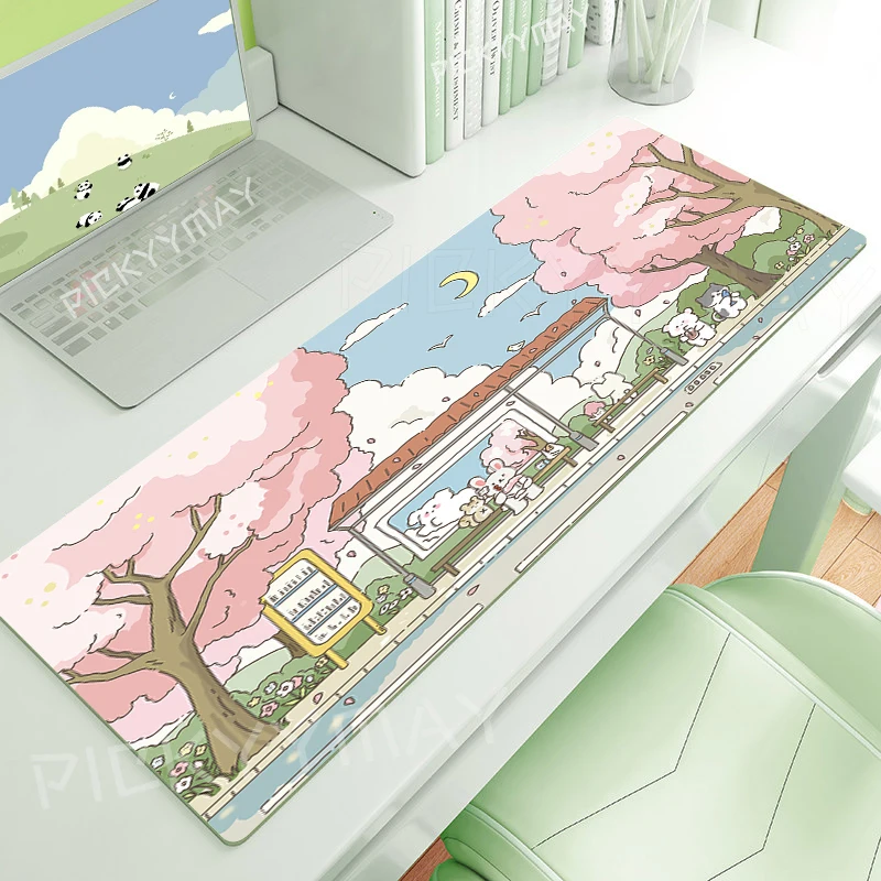 Alfombrillas de ratón bonitas para juegos, alfombrilla de escritorio para Gamer, alfombrilla grande para ratón, alfombrillas de escritorio de Anime Kawaii, alfombrillas para teclado, alfombrilla de ratón verde de 900x400mm