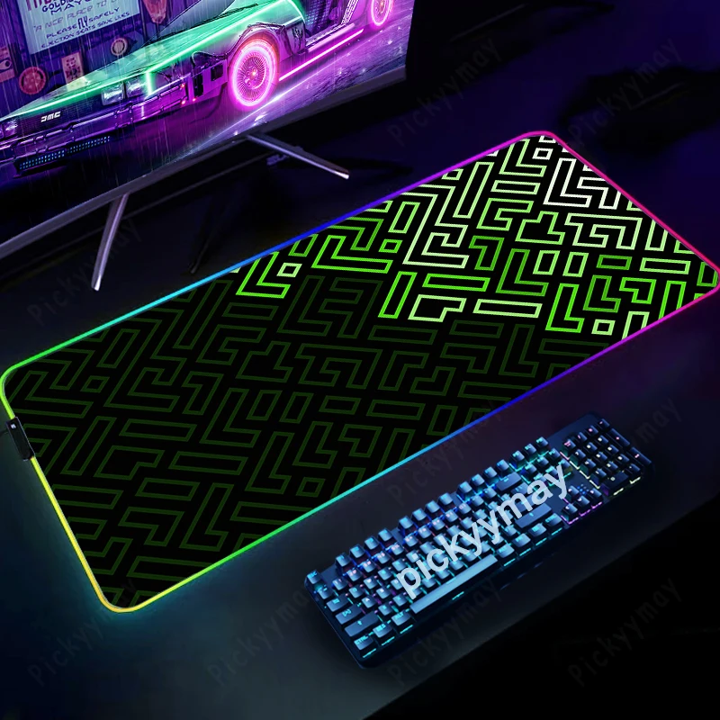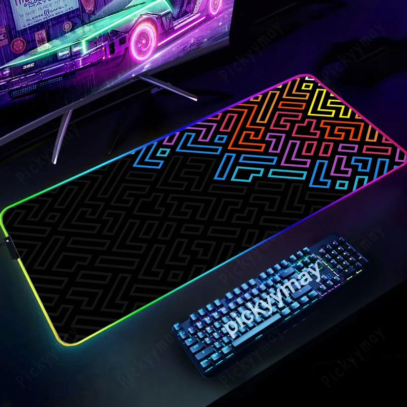 Comprar Alfombrillas de ratón LED geométricas para juegos, alfombrilla de escritorio con retroiluminación grande, color negro y morado, 100x50cm, alfombrilla para ratón RGB, alfombrilla luminosa para ratón