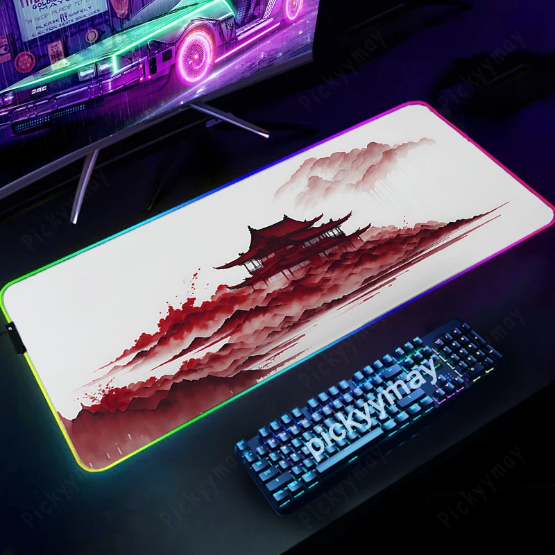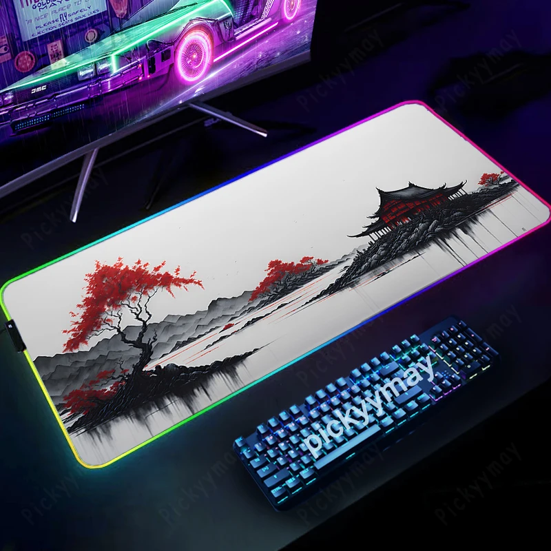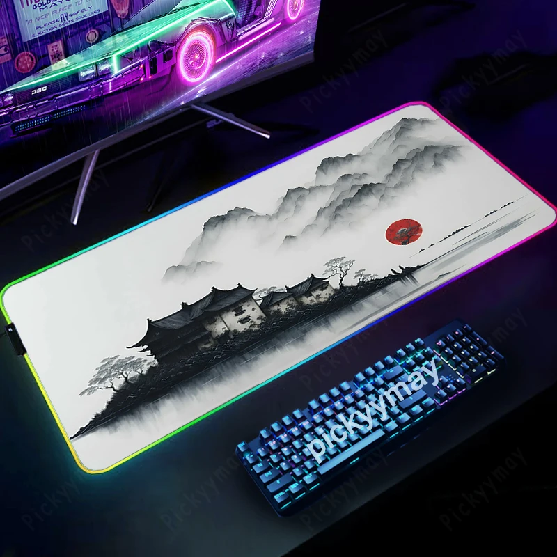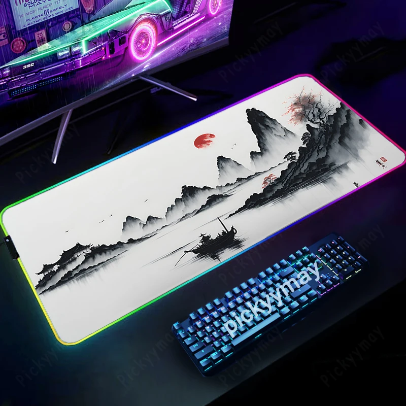 Comprar Alfombrillas de ratón RGB con pintura de tinta de paisaje, alfombrilla de escritorio para teclado, alfombrilla LED para jugador, alfombrillas de ratón XXL, alfombrillas luminosas para ratón