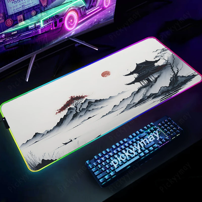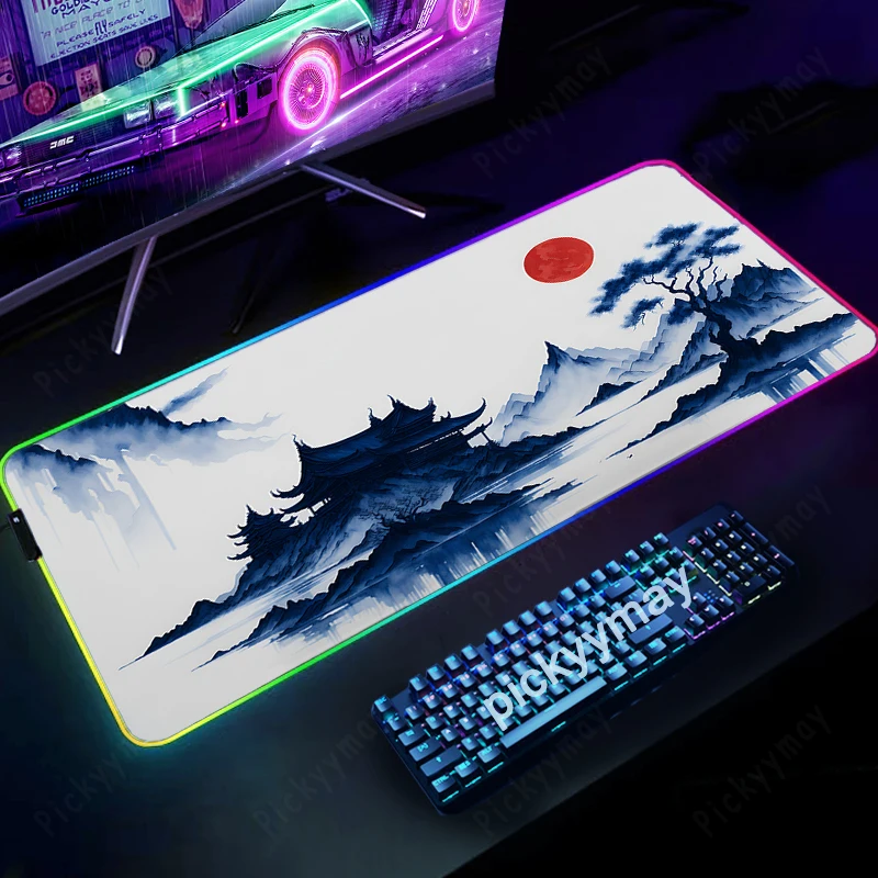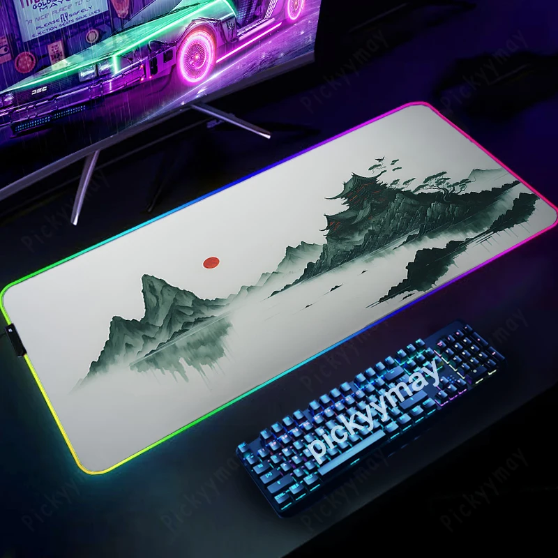 Comprar Alfombrillas de ratón RGB con pintura de tinta de paisaje, alfombrilla de escritorio para teclado, alfombrilla LED para jugador, alfombrillas de ratón XXL, alfombrillas luminosas para ratón