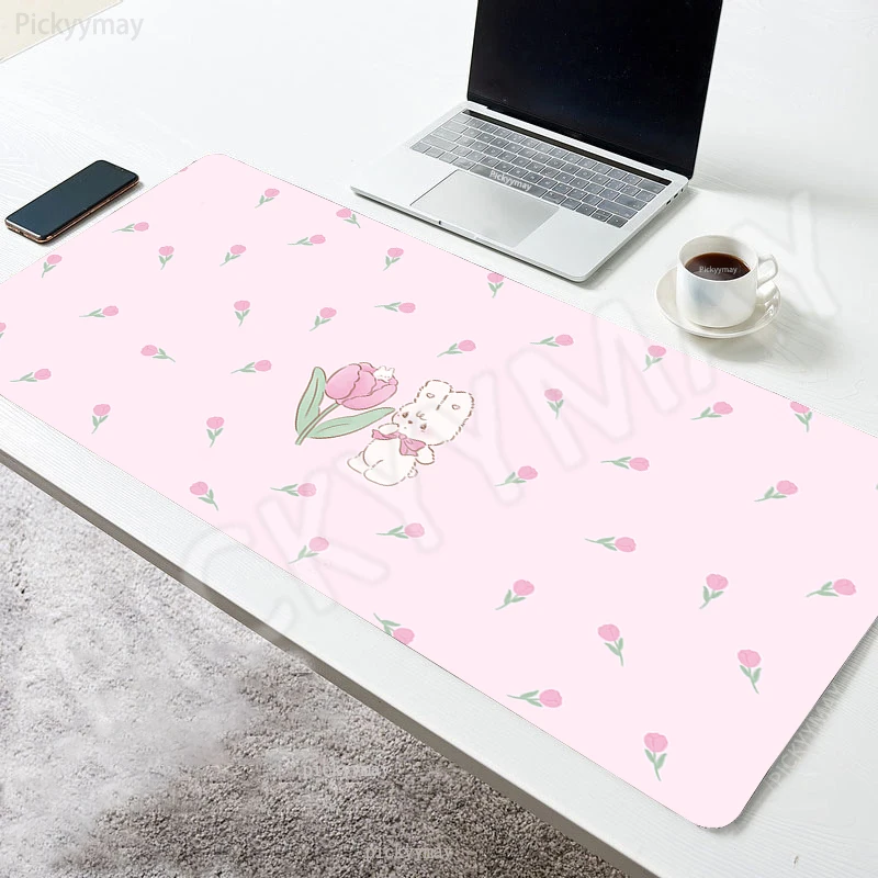 Comprar Alfombrillas de ratón rosas bonitas para oficina, alfombrilla de ratón grande para ordenador portátil, alfombrillas para teclado, alfombrilla de ratón de diseño Kawaii, Alfombra de mesa