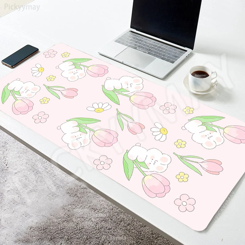 Comprar Alfombrillas de ratón rosas bonitas para oficina, alfombrilla de ratón grande para ordenador portátil, alfombrillas para teclado, alfombrilla de ratón de diseño Kawaii, Alfombra de mesa