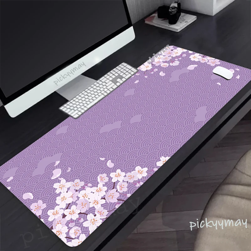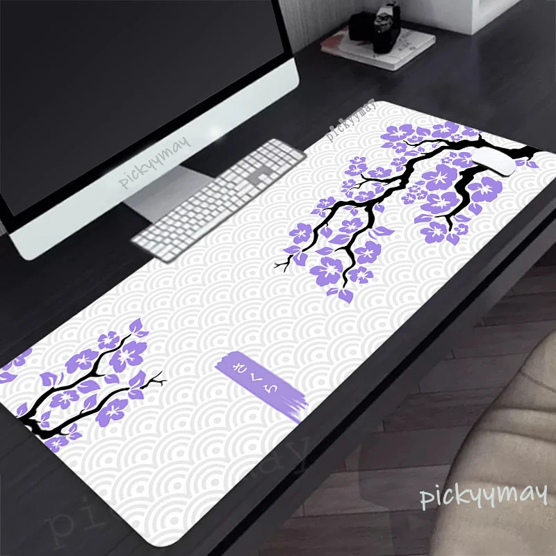 Comprar Alfombrillas de ratón XXL con borde de bloqueo, alfombrilla de ratón púrpura Sakura, alfombrilla de ratón grande para juegos, alfombrillas de teclado, alfombrilla de escritorio para regalo, 80x30cm