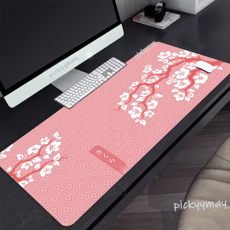 Comprar Alfombrillas de ratón XXL con borde de bloqueo, alfombrilla de ratón púrpura Sakura, alfombrilla de ratón grande para juegos, alfombrillas de teclado, alfombrilla de escritorio para regalo, 80x30cm