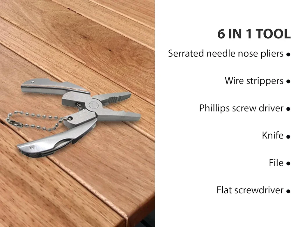 Juego de mini llaveros Alicates multiherramienta 6 en 1, llave ajustable y estuche de transporte - Pelacables multifuncionales todo en uno, destornillador Phillips, cuchillo, lima