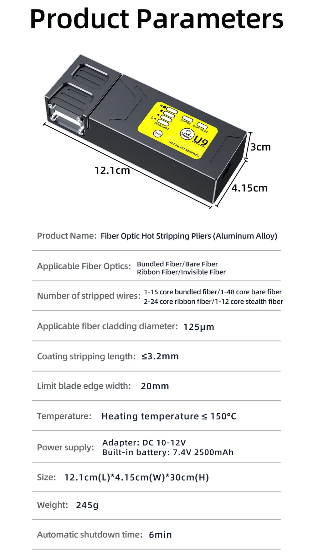 The Fiber Optic Hot Stripping Pliers are designed for non-destructive thermal stripping, suitable for 1-48 core fiber cables.