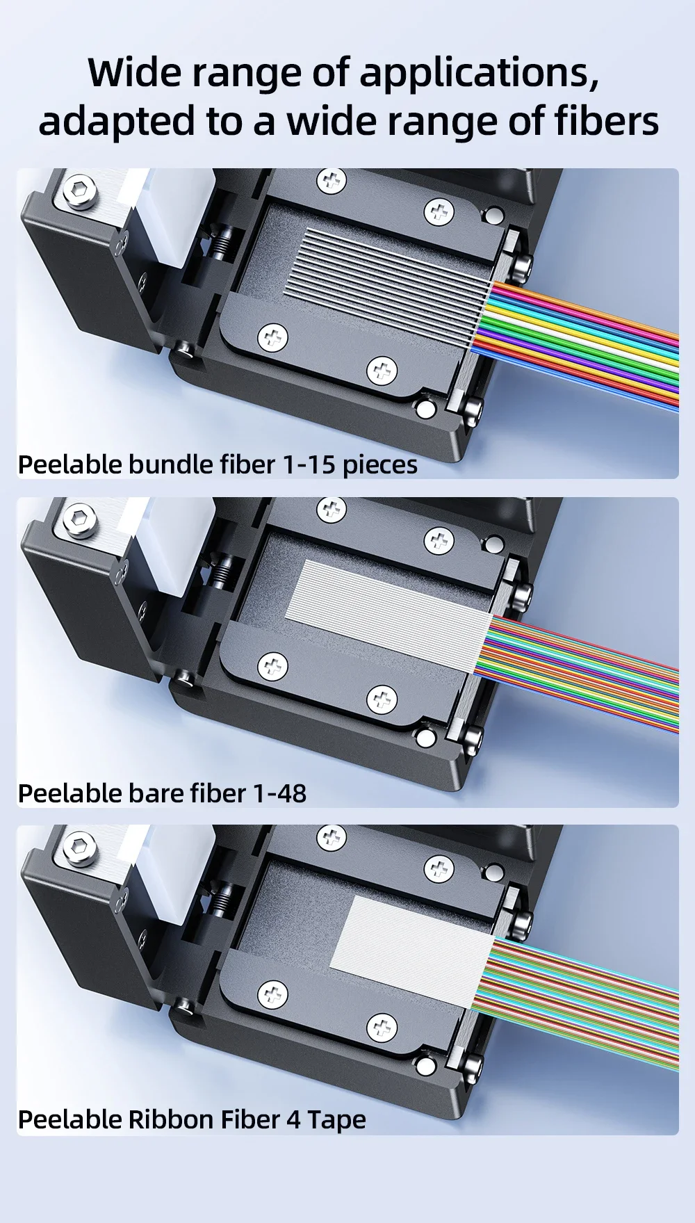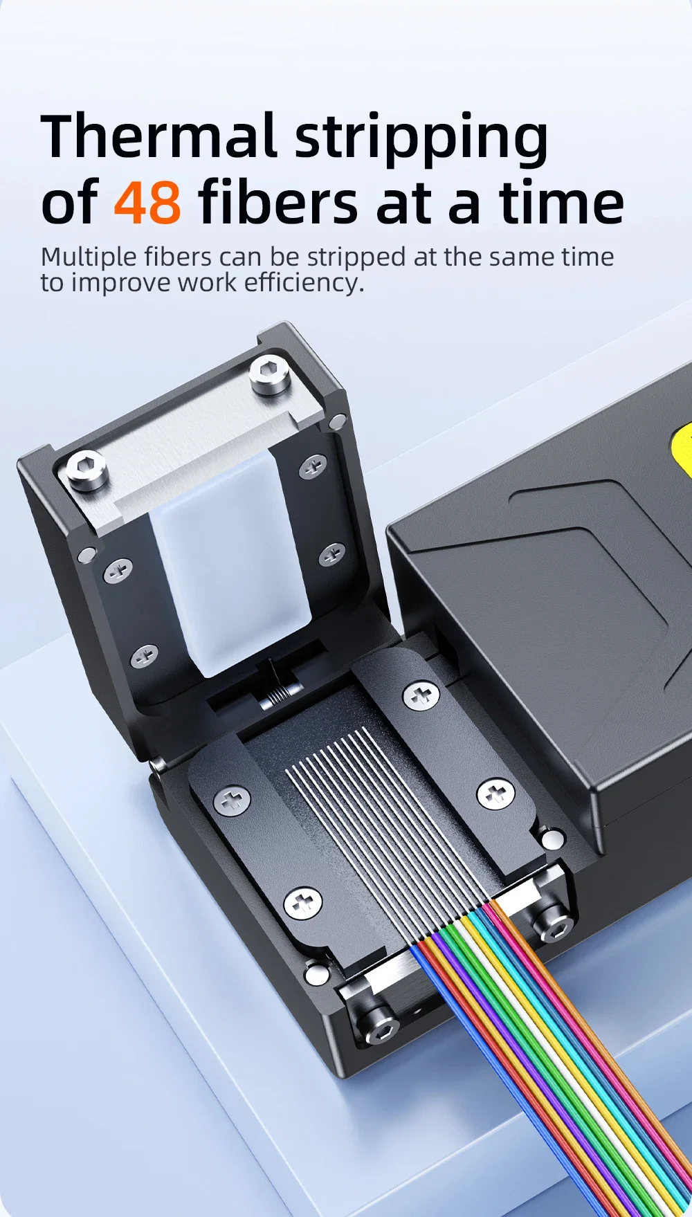 This tool allows for thermal stripping of up to 48 fibers at once, significantly improving work efficiency during fiber preparation.