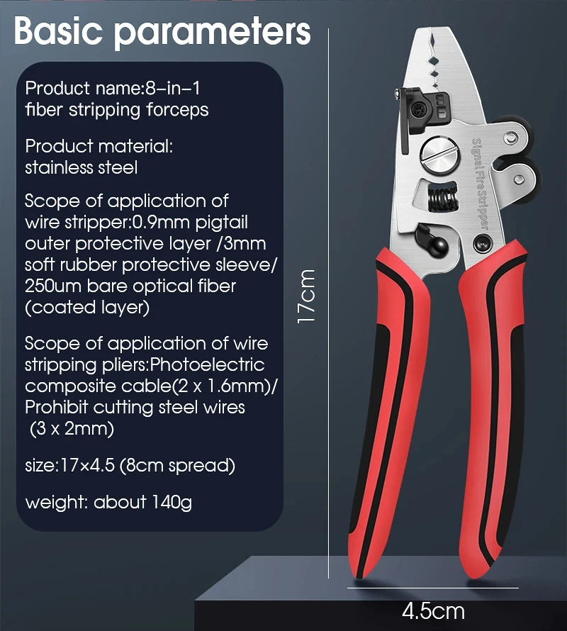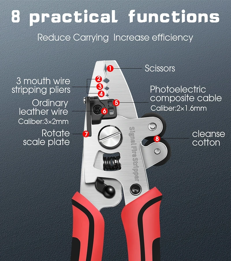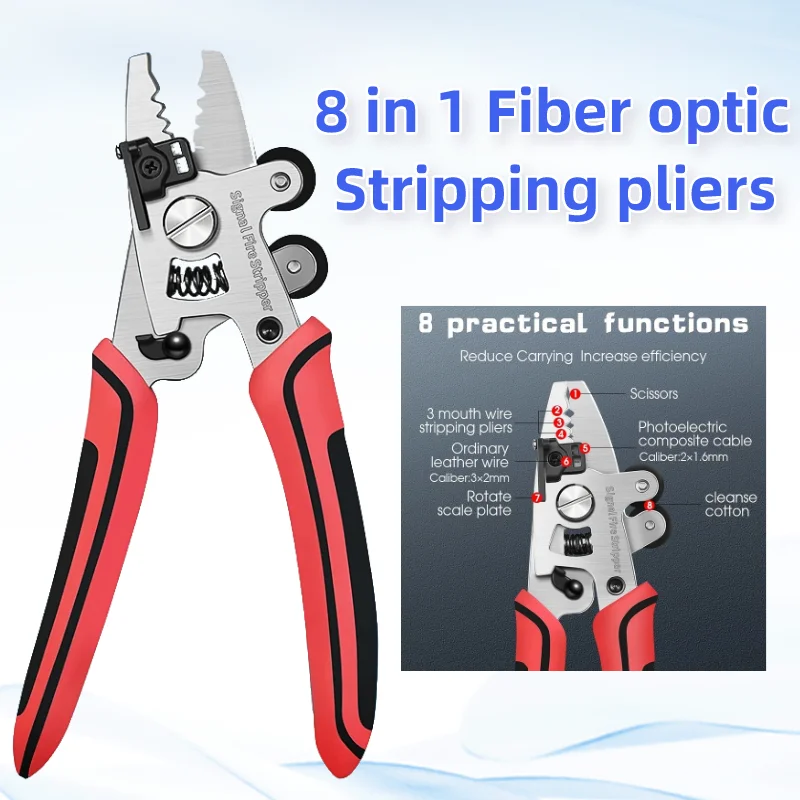 Comprar Alicates Pelacables de fibra óptica ZSQ-08 FTTH 8 en 1, herramienta Pelacables de fibra óptica multifuncional