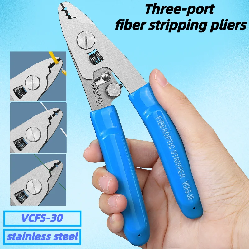 Comprar Alicates pelacables de fibra de tres puertos de acero inoxidable VCFS-30, herramienta FTTH, pelacables de fibra óptica (dos puertos opcionales)