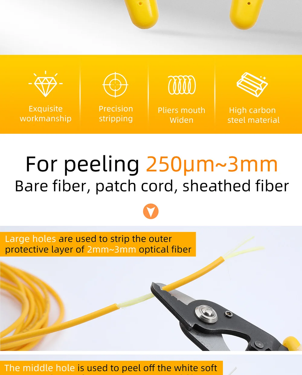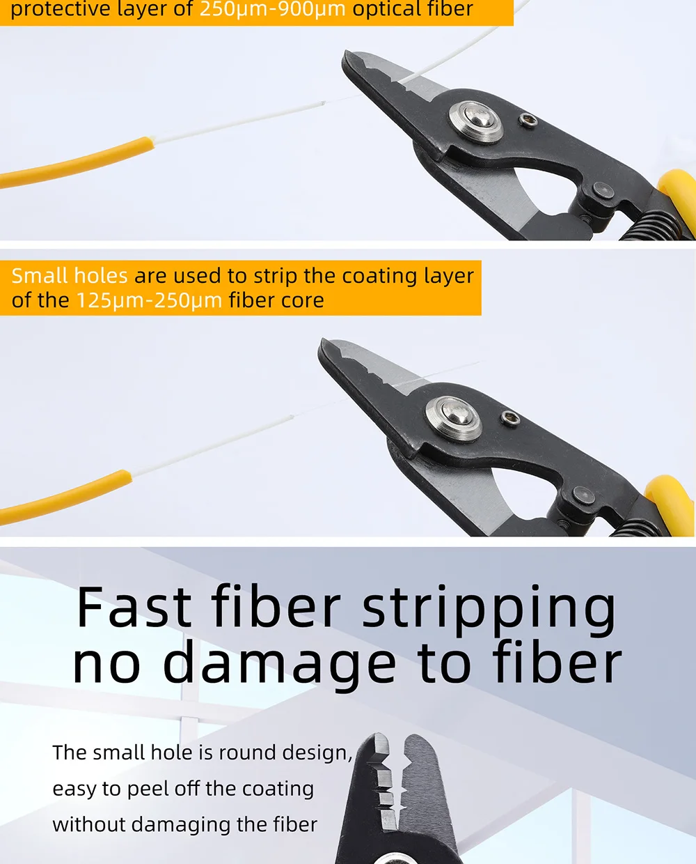 Comprar Alicates de pelado de fibra de tres puertos FTTH, herramienta de pelado de cable óptico