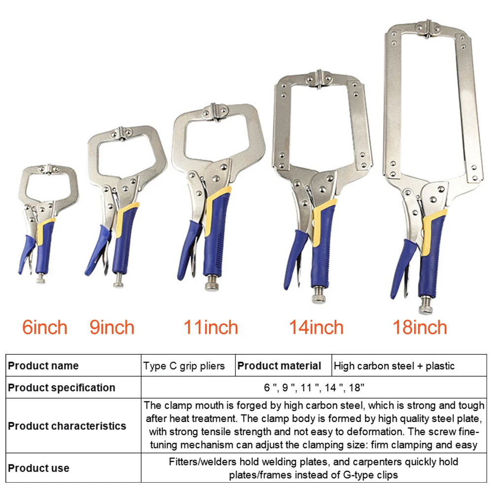Comprar Alicates potentes multifuncionales tipo C de 6/9/11/14/18 pulgadas, alicates tipo C para soldadura de acero, alicates de sujeción fija para trabajadores