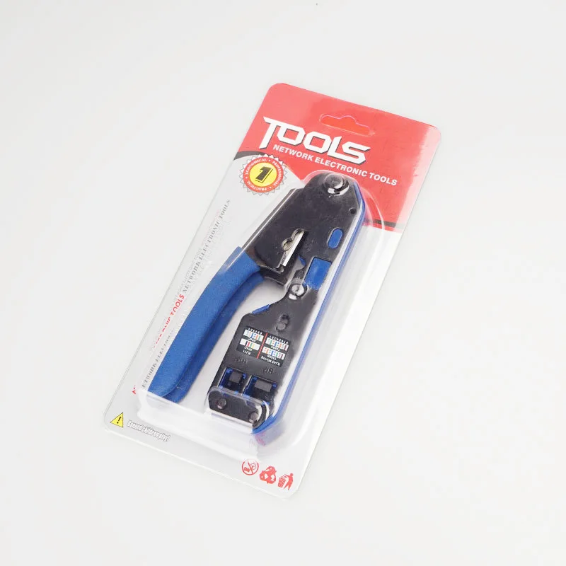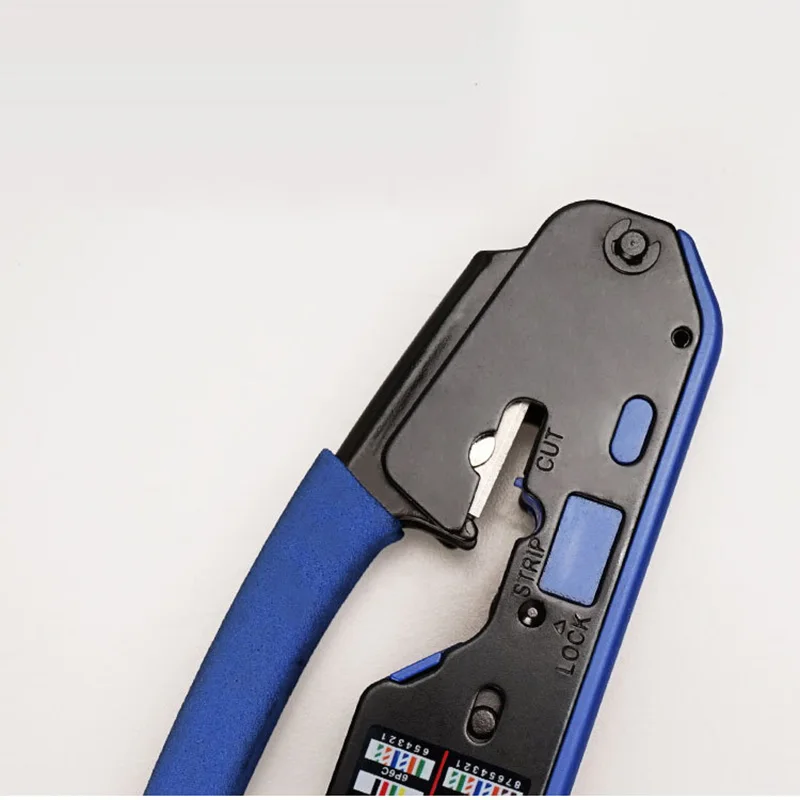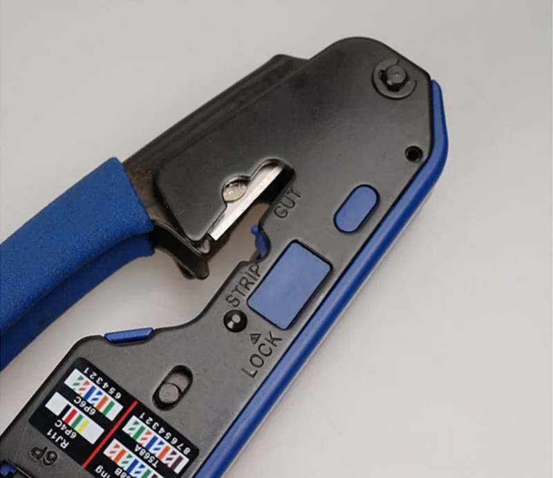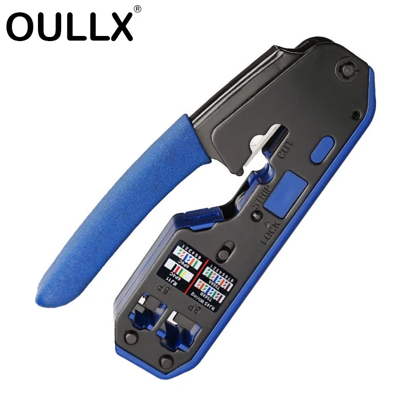 Comprar Alicates de prensado de red multifuncionales OULLX RJ45 RJ11 8P8C herramienta hecha con cabezal de cristal con herramienta de reparación de funciones de pelado de cables