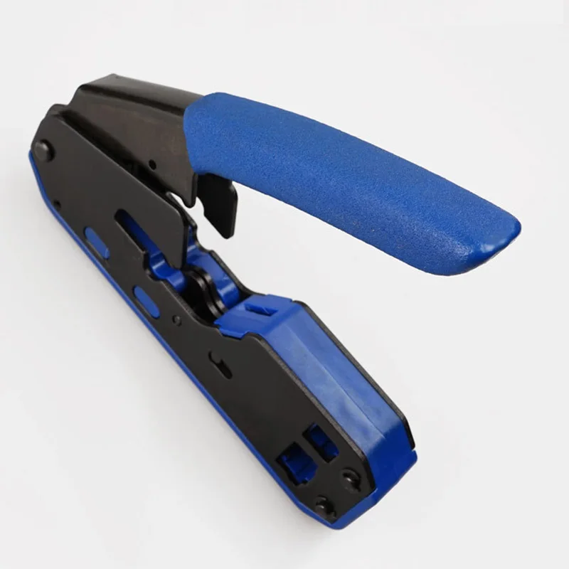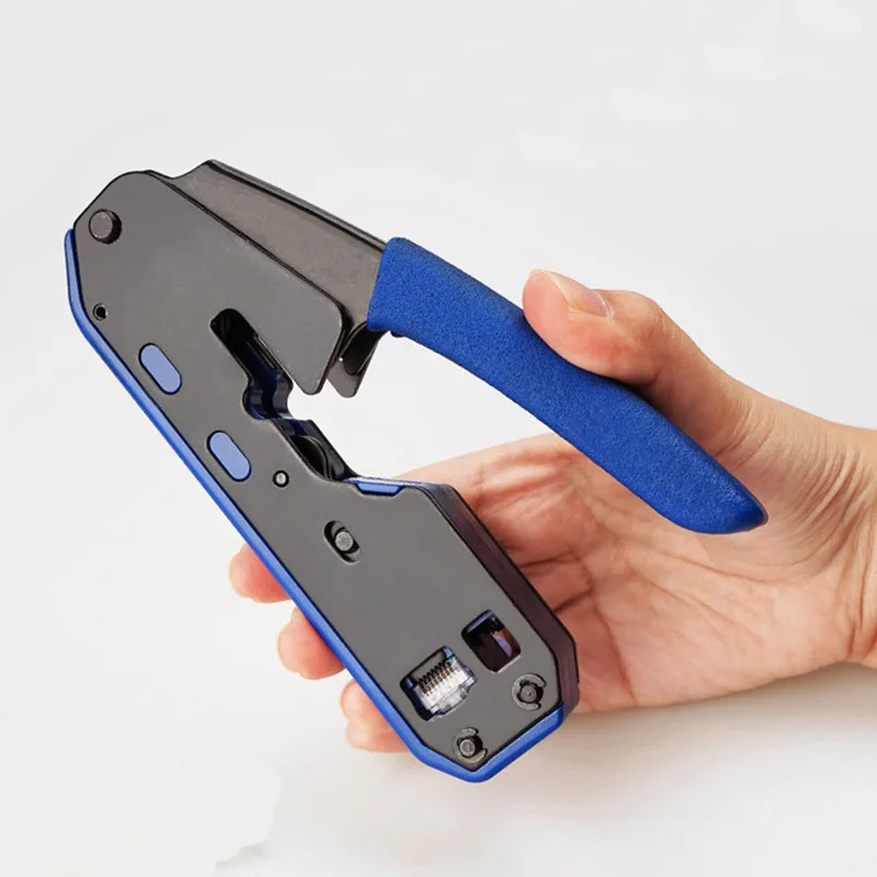 OULLX Alicates de engarzado de red multifuncionales RJ45 RJ11 8P8C herramienta hecha con cabeza de cristal con herramienta de reparación de características de pelado de cables