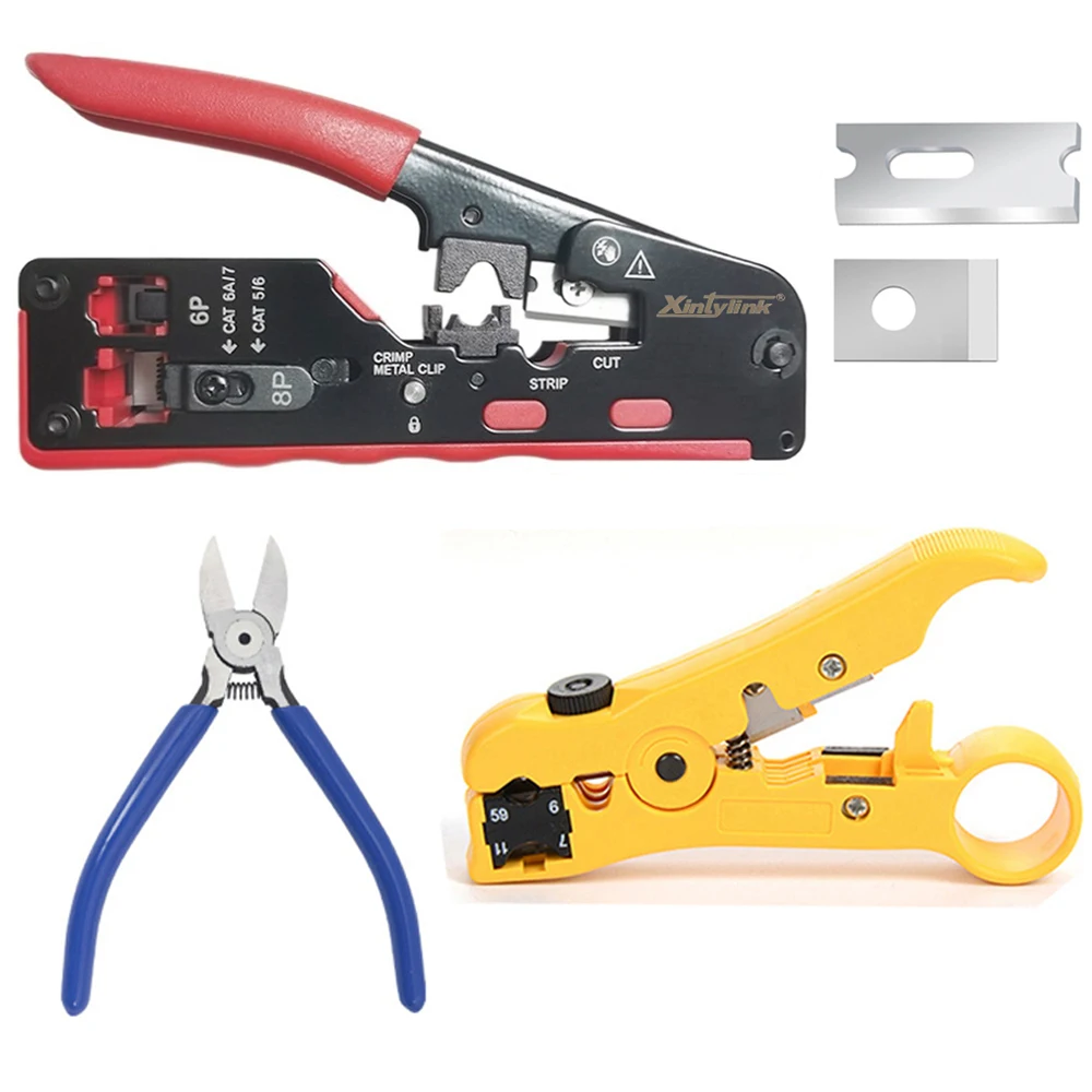 Crimpadora xintylink RJ45 todo en uno, para conector cat7/Cat6/RJ45 normal