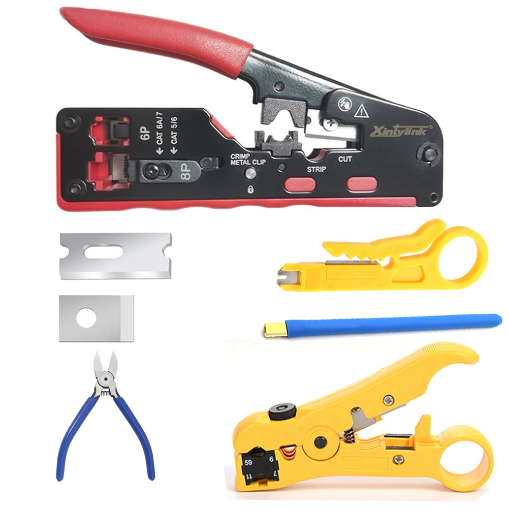 Crimpadora xintylink RJ45 todo en uno, para conector cat7/Cat6/RJ45 normal