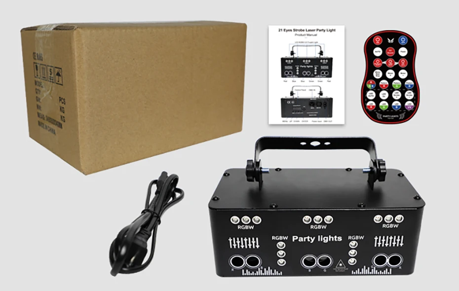 1 * iluminación láser, 1 * línea eléctrica, 1 * manual, 1 * control remoto