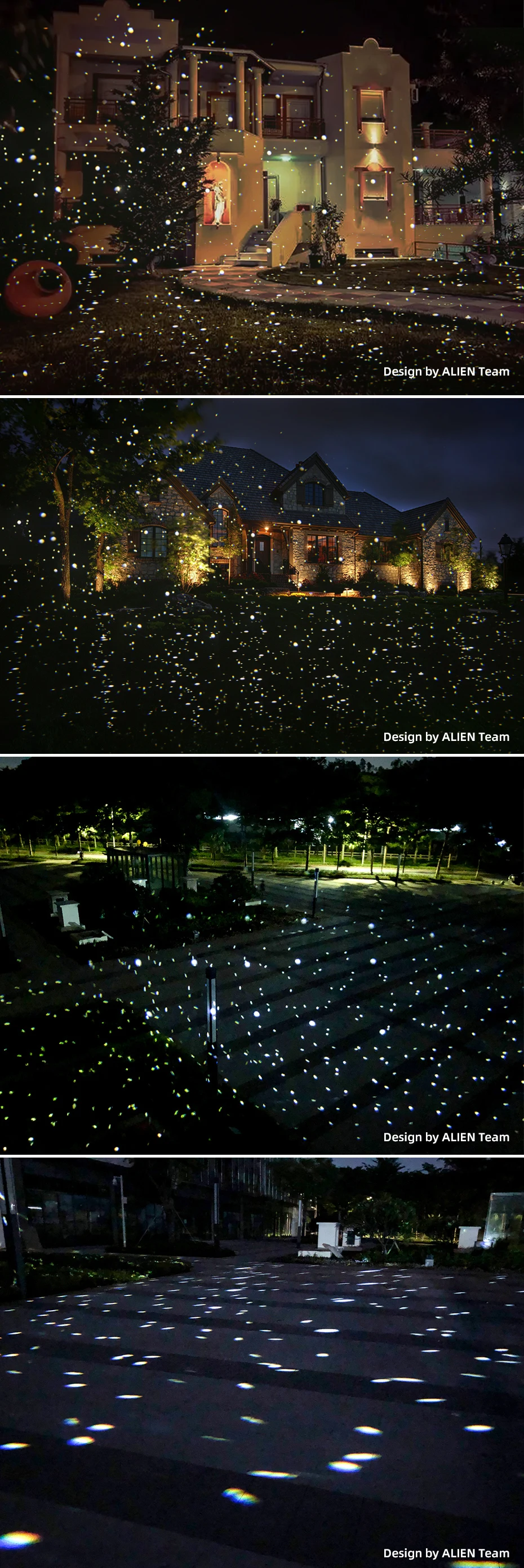 Utiliza tecnología láser holográfica que se encuentra en los parques temáticos para proyectar estrellas impresionantes en cualquier superficie, resistente a la intemperie para soportar la nieve, la lluvia y el sol intenso. Seguro, aprobado por FDA, FCC, ROHS y la prueba IP65.