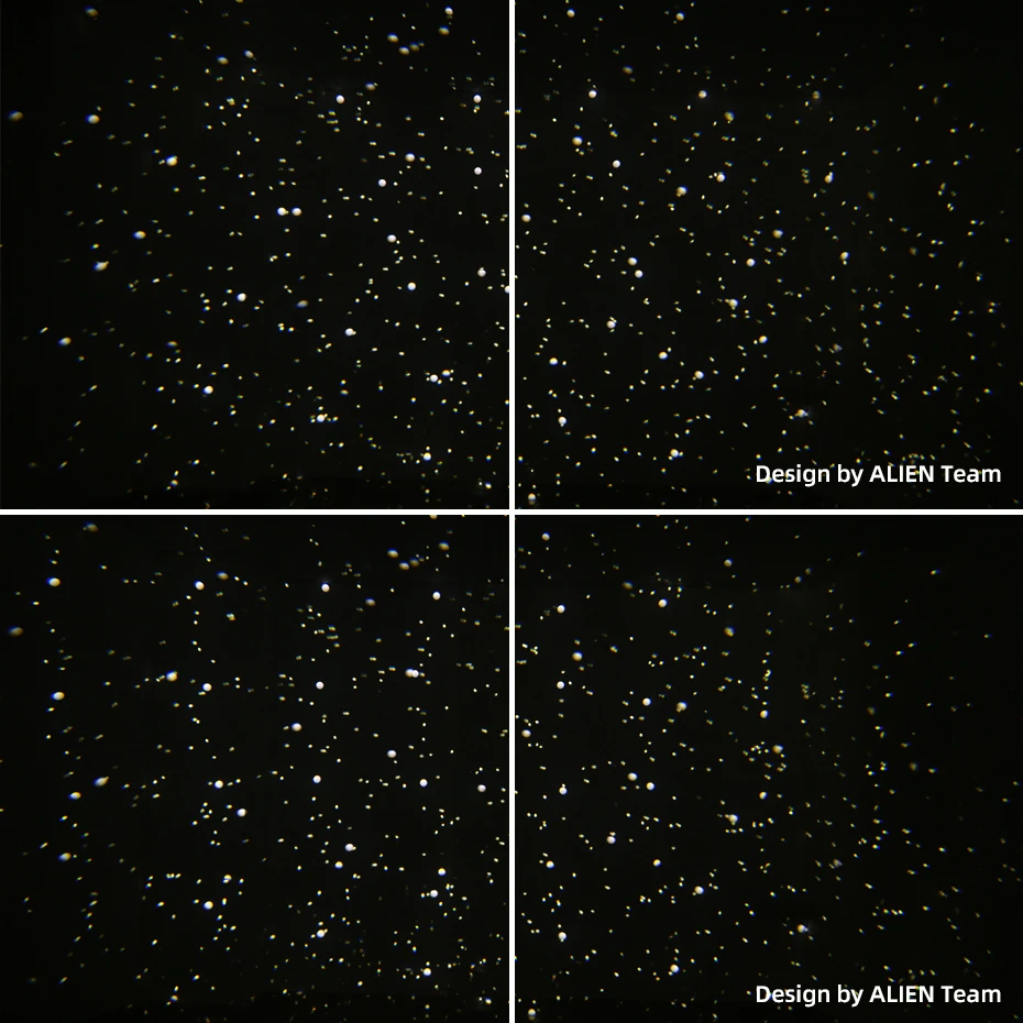 2. Mediante un proceso óptico especial, puede obtener efectos de estrella centelleante de color blanco irregular, brillante y oscuro/luciérnaga amarilla.