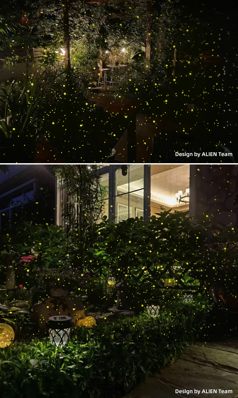 3. Los usuarios pueden configurar diferentes niveles de velocidad de rotación, para obtener cientos de miles de luciérnagas de color blanco volando alrededor de los efectos ambientales.