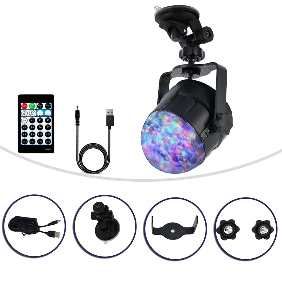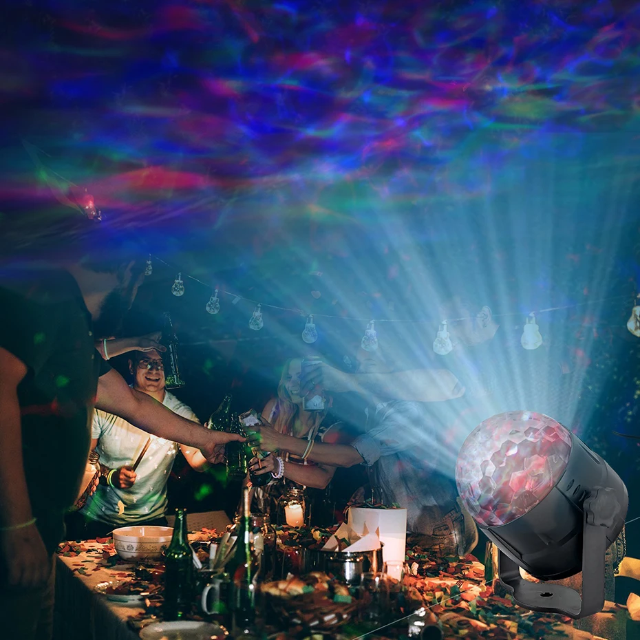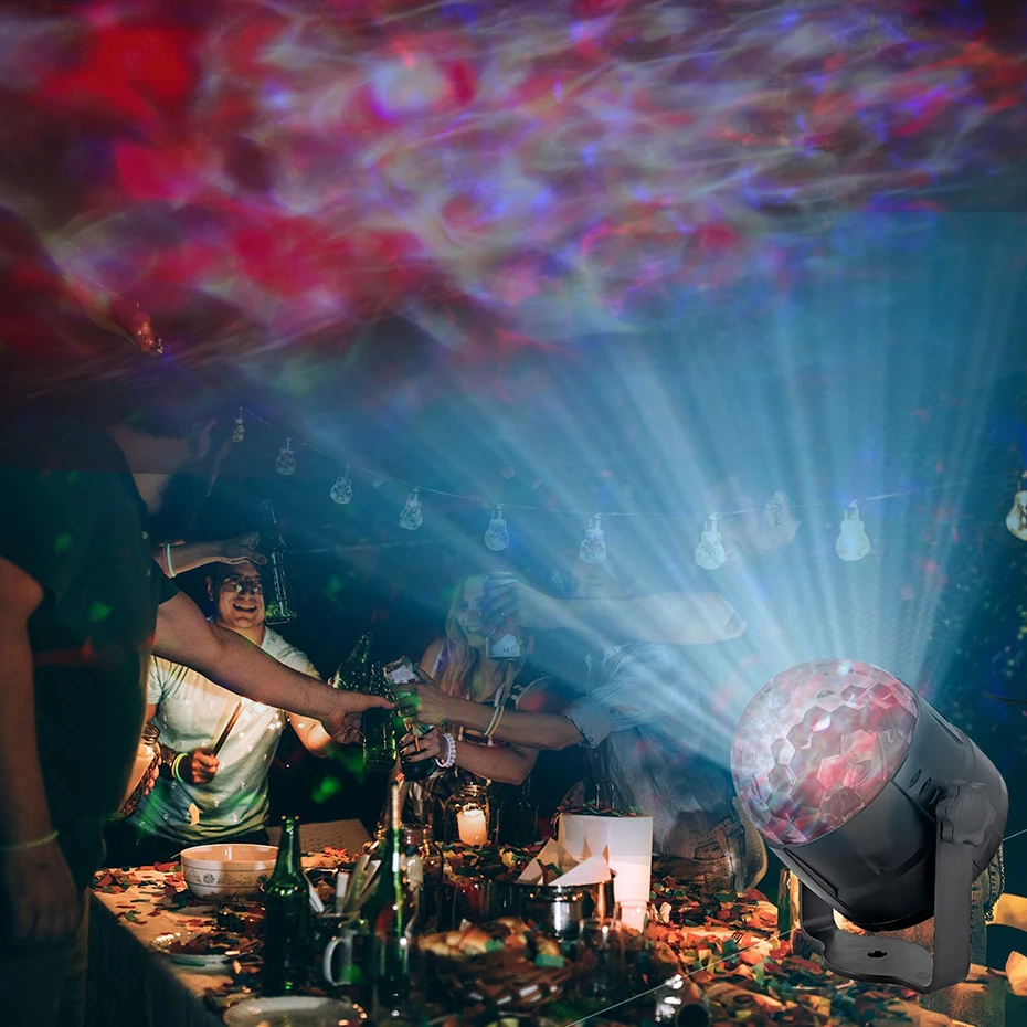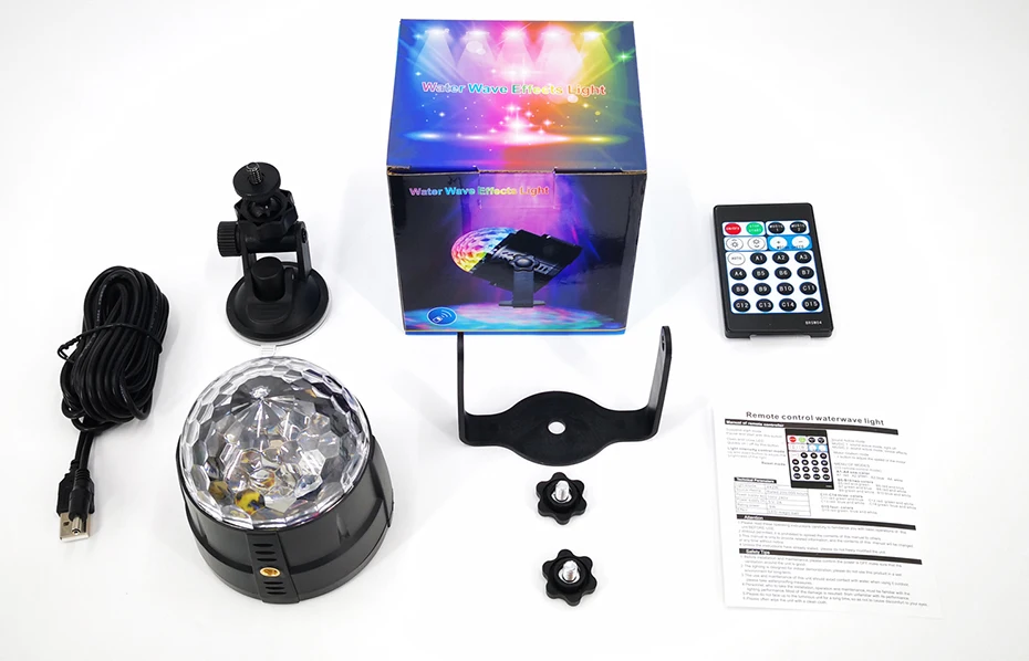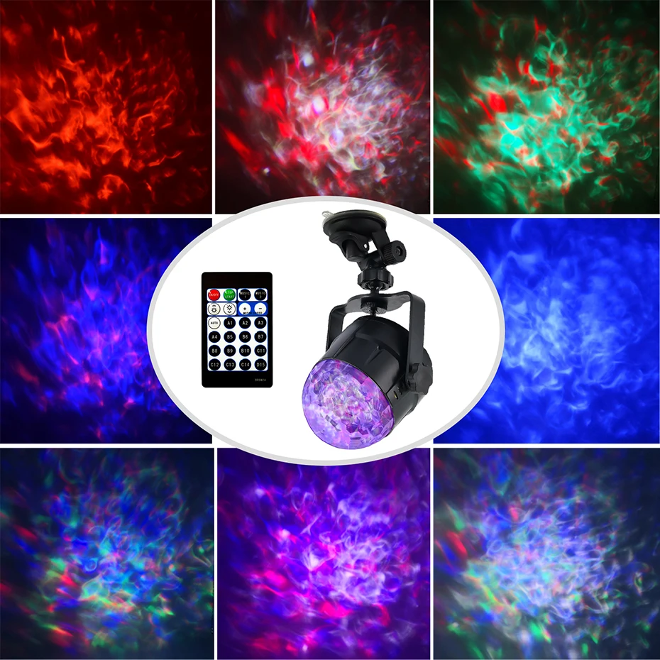 This LED Party Light Has Waterwave Flash Effect With Different Colors. With 15 Colors Optional, It Can Bring You Different Lighting Effect And Create Lively Atmosphere, Which Is Suitable For Different Parties, Occasions, Bars And So On. Features: 15 Color Modes Optional, Freely Adjustable Mode. Includes 4 Control Modes: Auto, Sound-Activated, Remote Control And Strobe Flash. Small Power Consumption, Low Heat And Excellent Stability. Small Size, Portable To Carry. With A Portable Remote Control, Easy To Use. Easy To Install. You Can Put In Any Place You Like. Suitable For Different Parties, Occasions And Bars To Create Lively Atmosphere.