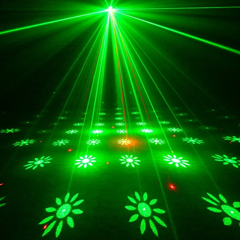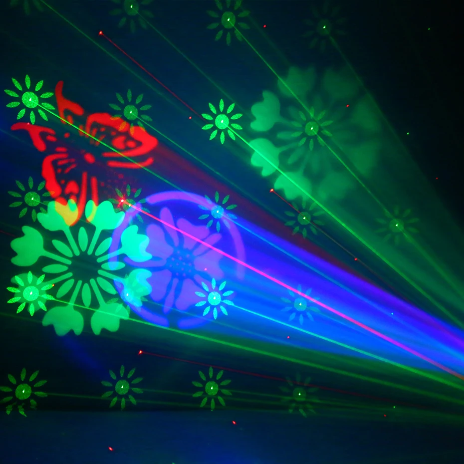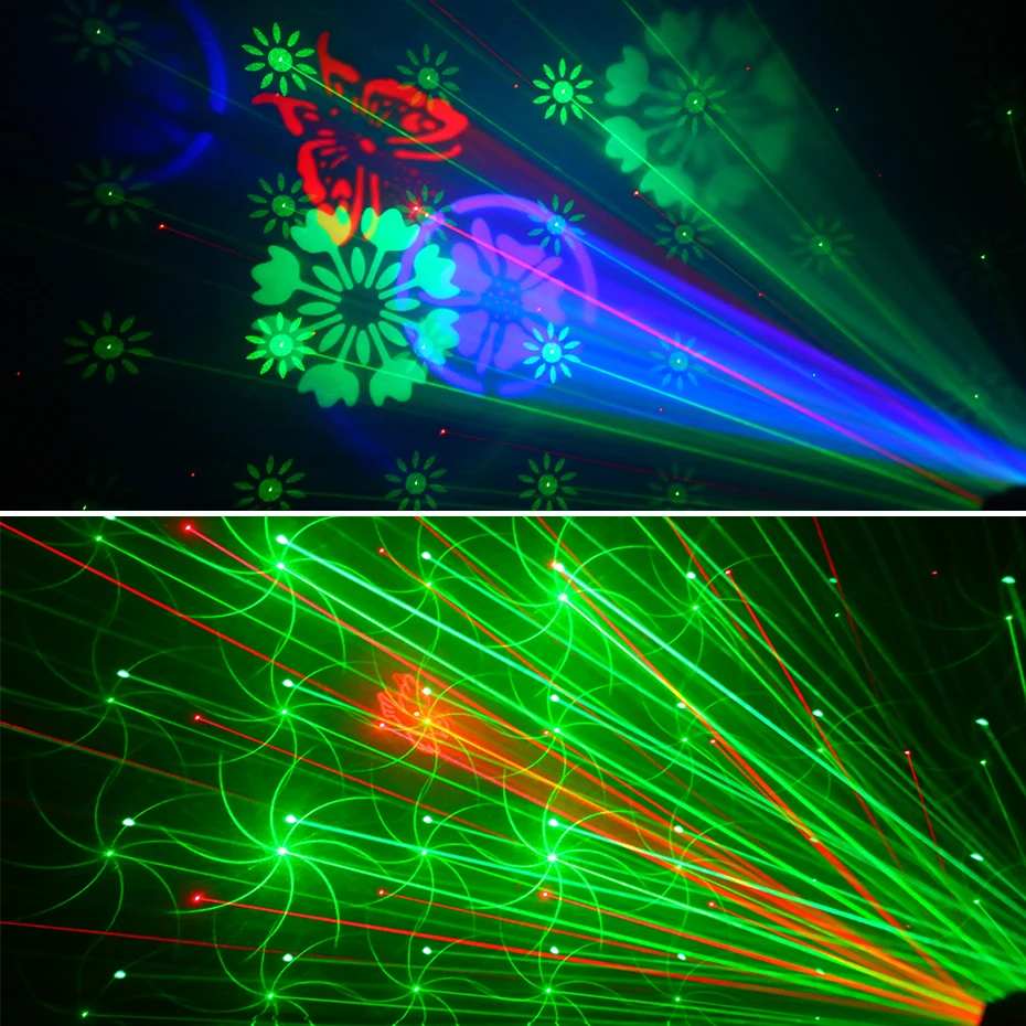 [Efectos 5 en 1] Estroboscópico Blanco/Gobo LED/Patrones láser RG/Luz de bola mágica LED RGB/Teñido RGB