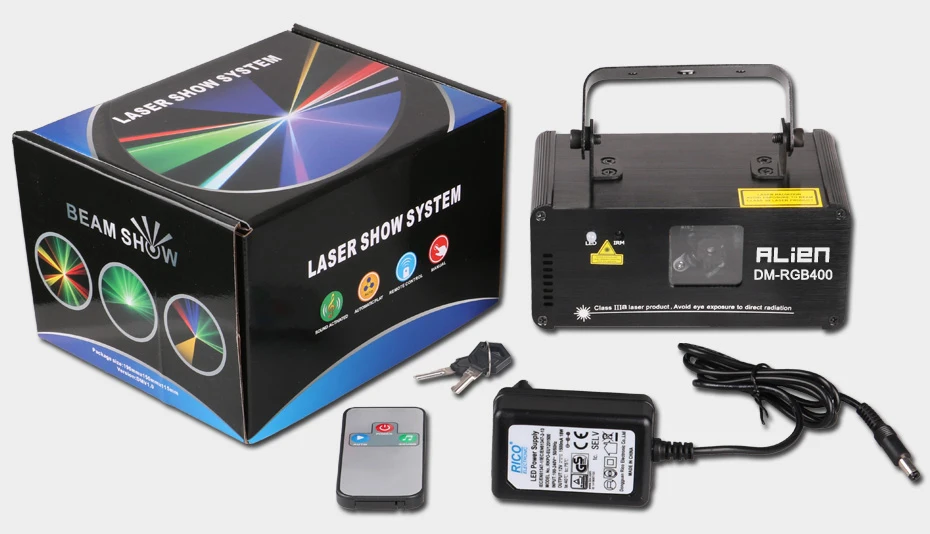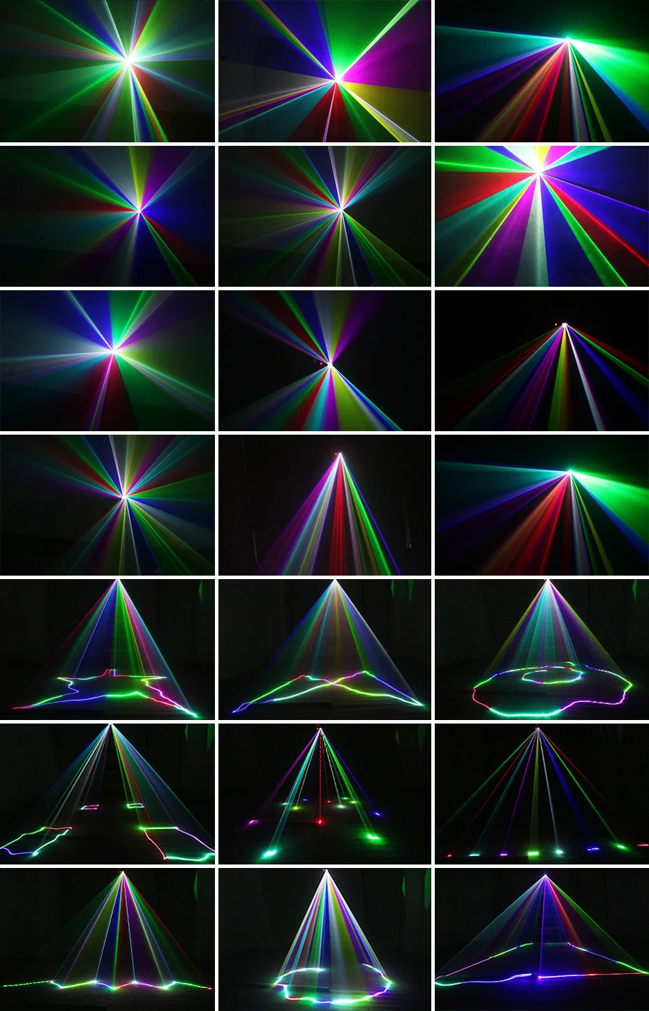 El láser es un sistema láser rojo, verde y azul a todo color. Las fuentes láser garantizan colores brillantes y potentes rayos láser. El láser RGB incluye un control remoto IR para control inalámbrico y para cambiar entre programas activados por sonido o automáticos. En el modo DMX también tiene un control total de todos los patrones, movimientos de la X-Y, zoom, velocidad y rotación. Es ideal para aplicaciones semiprofesionales y es perfectamente adecuado en bares, clubes medianos y discotecas. Así como para empresas de alquiler, DJs móviles, uso privado y en cualquier otra ubicación de fiesta.