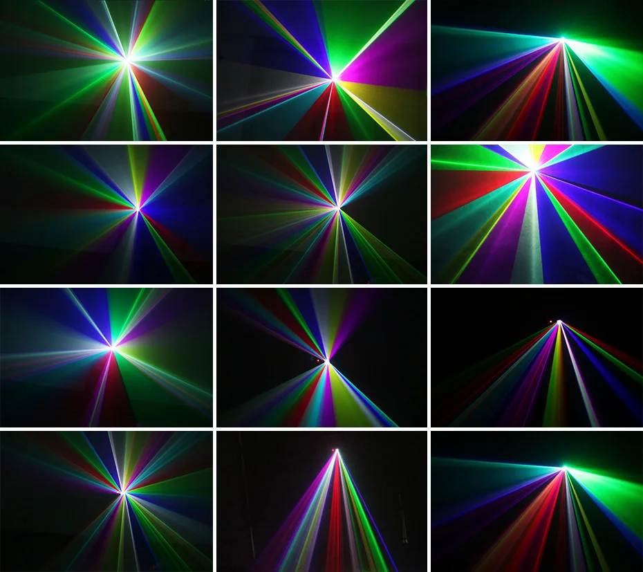 Láser: rojo 200MW @ 650nm, verde 50MW @ 532nm, azul 150MW @ 450nm. Mezclado a todo color.