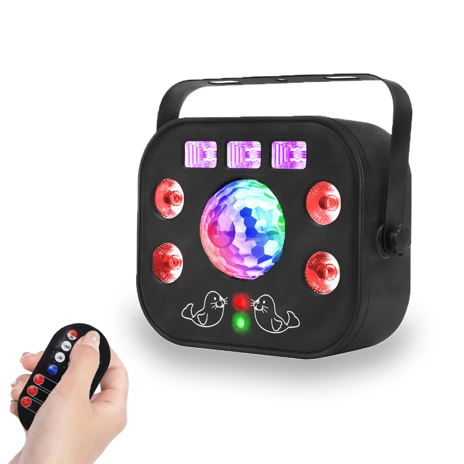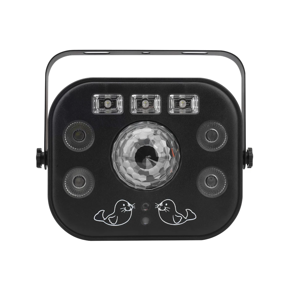 Efecto de iluminación: bola mágica, patrones láser, luz par LED, luz negra UV, luz estroboscópica blanca.