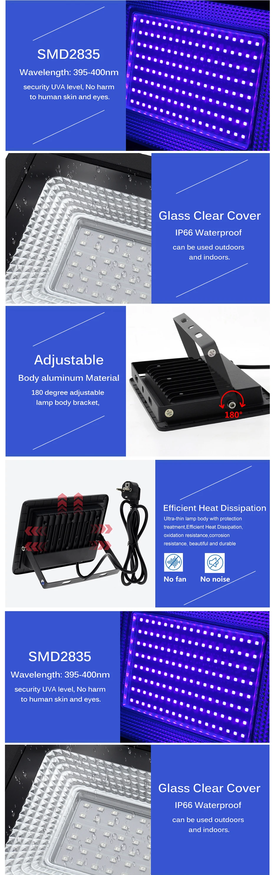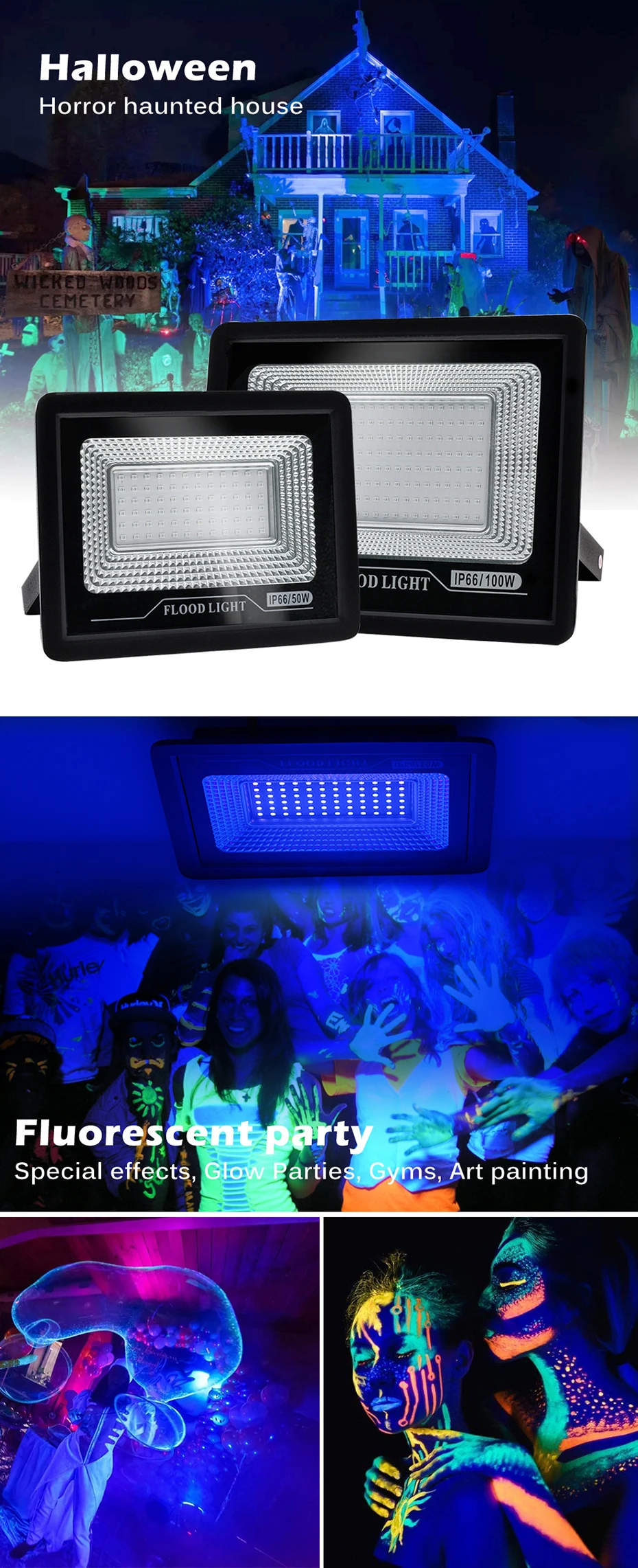 Comprar ALIEN-Lámpara LED de inundación ultravioleta para escenario, luz negra UV de 100W, impermeable, 392nm, para Halloween, Navidad, baile, DJ, fiesta Disco