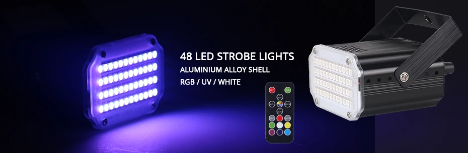 Comprar ALIEN-luces LED UV de 48 RGB para DJ, efecto de iluminación de escenario activado por sonido, Flash estroboscópico con Control remoto, para fiesta y Club de vacaciones