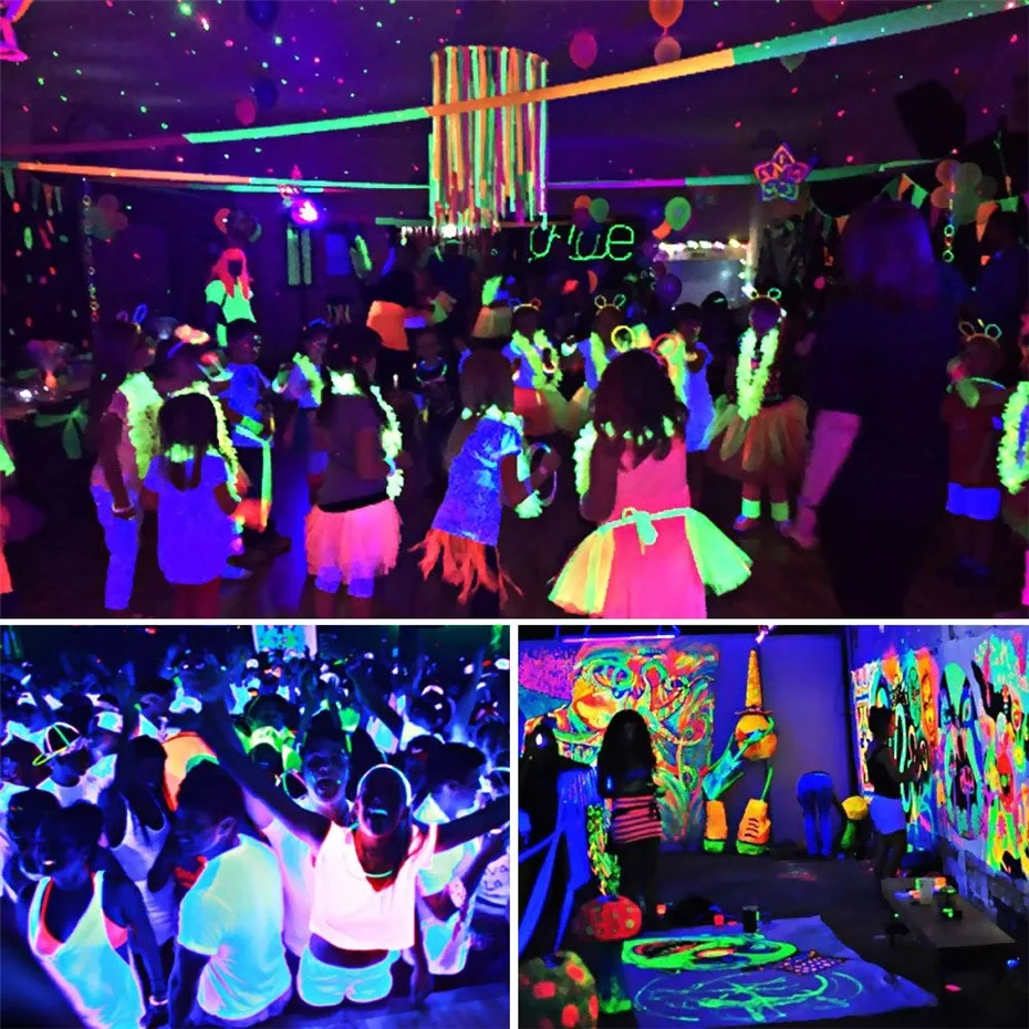 - Crea impresionantes atmósferas en actuaciones y fiestas, funciona muy bien con pinturas UV corporales y fluorescentes.