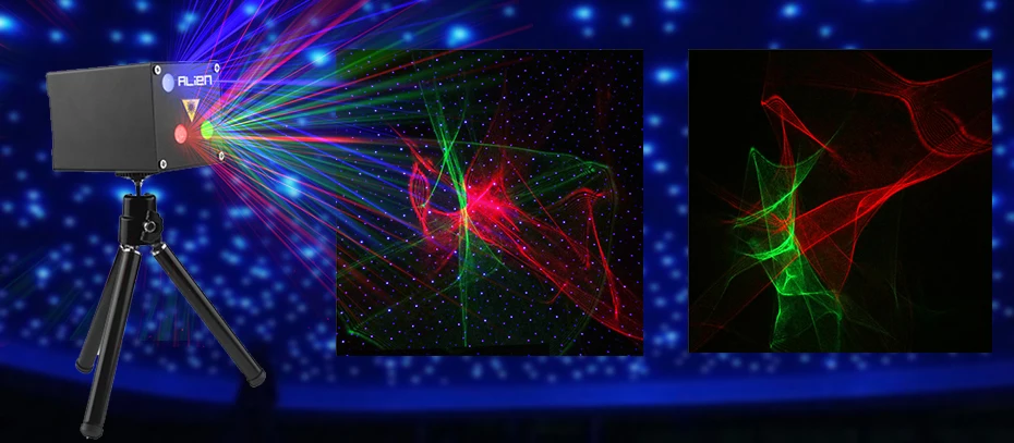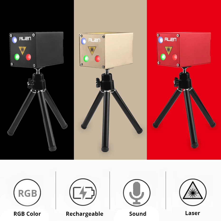 ALIEN Mini luz láser recargable incorporada 1500mAh Batería de litio recargable, viene con un cable de carga que se carga desde su computadora, Banco de energía o cualquier dispositivo con un puerto USB. ¡Puedes crear un espectáculo increíble en cualquier momento y en cualquier lugar!
