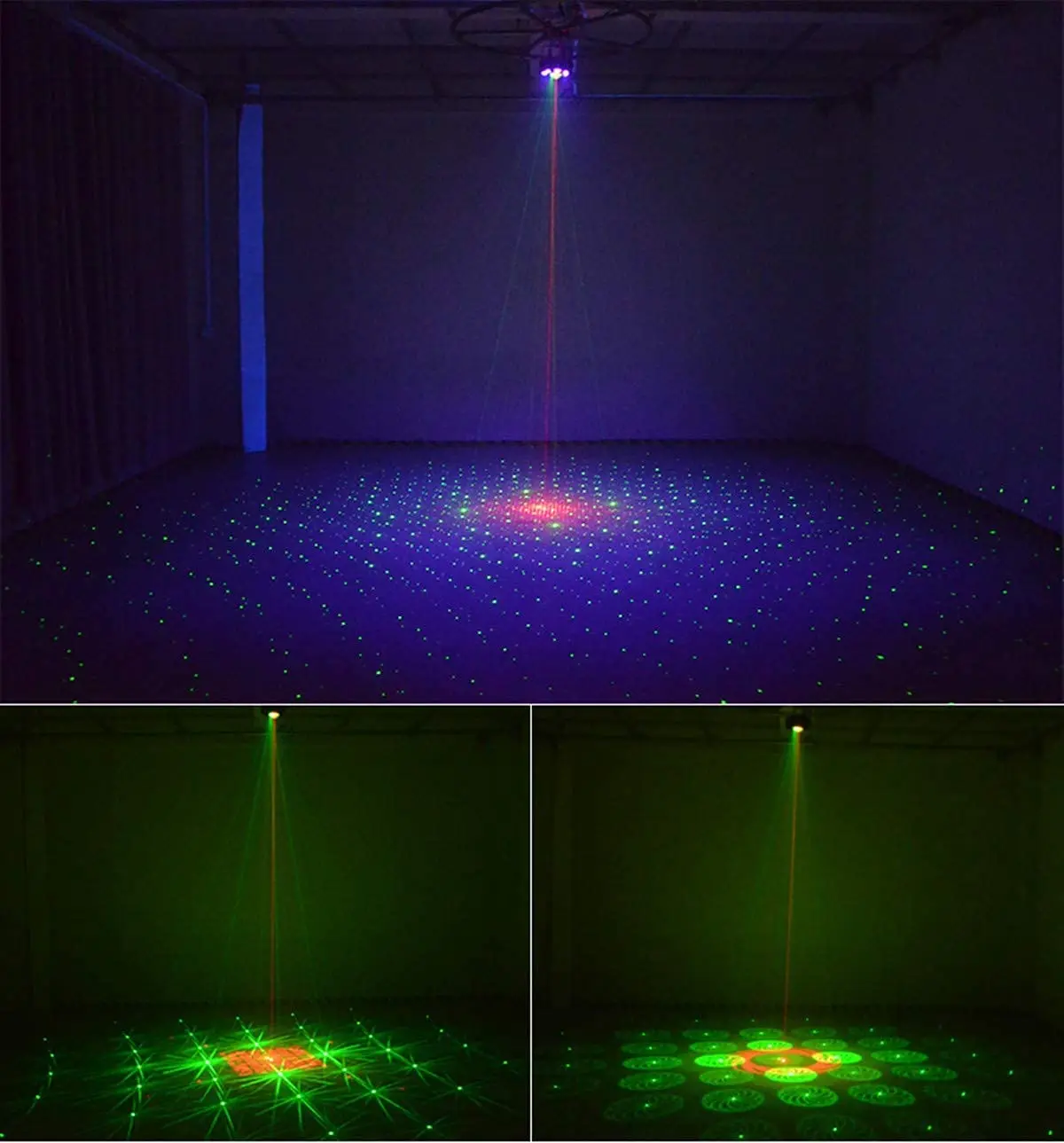 Fuente de luz: luz púrpura W 5*3, 1*15W 4-en-1 Cuenta, 2*10W estroboscópico, 30mW luz láser rojo-verde
