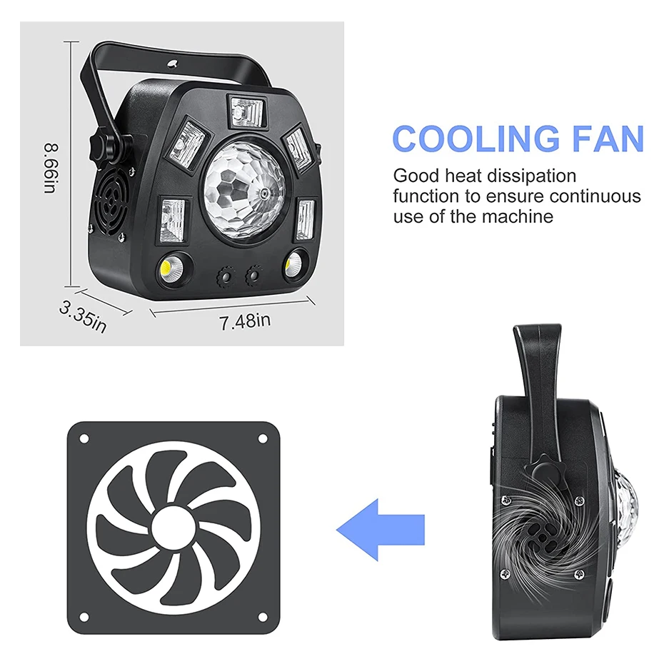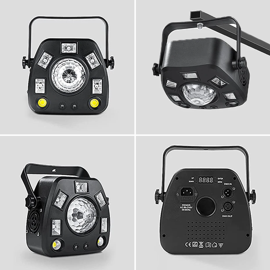 Puede cambiar 4 modos de trabajo: DMX512/maestro-esclavo/ejecución automática/sonido activado.