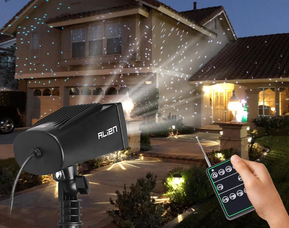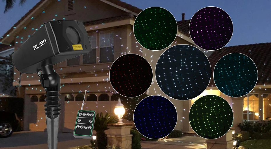 Láser blanco hecho a través de semiconductores verdes, azules y rojos, LUCES LÁSER que utilizan sistemas ópticos avanzados ALIEN y control preciso de la relación de potencia para formar los 7 colores de la naturaleza, incluyendo blanco, rosa, verde azulado, verde. rojo, amarillo, con modo estrellado, centelleo, decoloración, persecución y efectos estáticos, Optimizado para decoración de vacaciones al aire libre, luces decorativas, proyectores de iluminación decorativos para exteriores, colores de espectro completo y con control de velocidad, también con flash o estática de su elección.