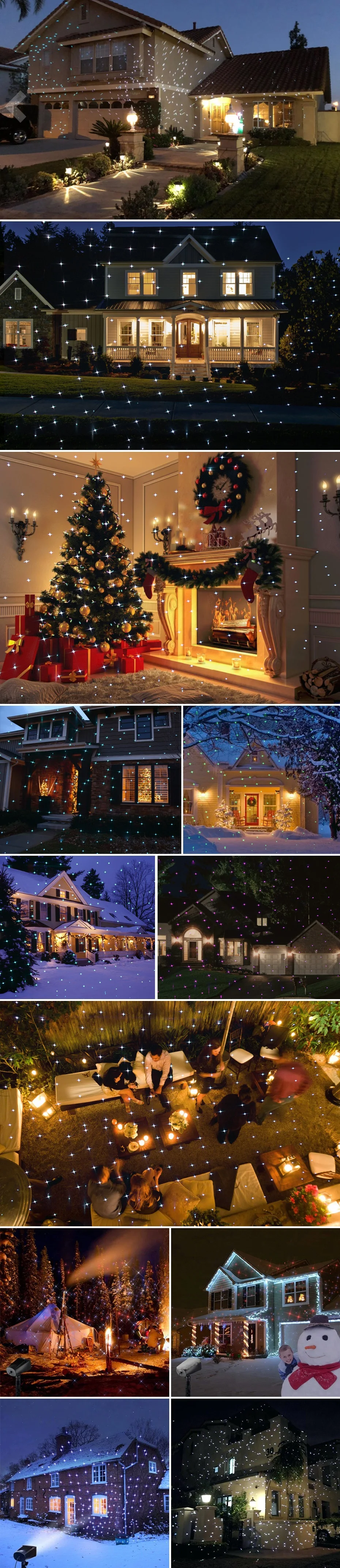 Utiliza tecnología láser holográfica que se encuentra en los parques temáticos para proyectar estrellas impresionantes en cualquier superficie, resistente a la intemperie para soportar la nieve, la lluvia y el sol intenso. Seguro, aprobado por FDA , FCC , ROHS y pruebas IP65.