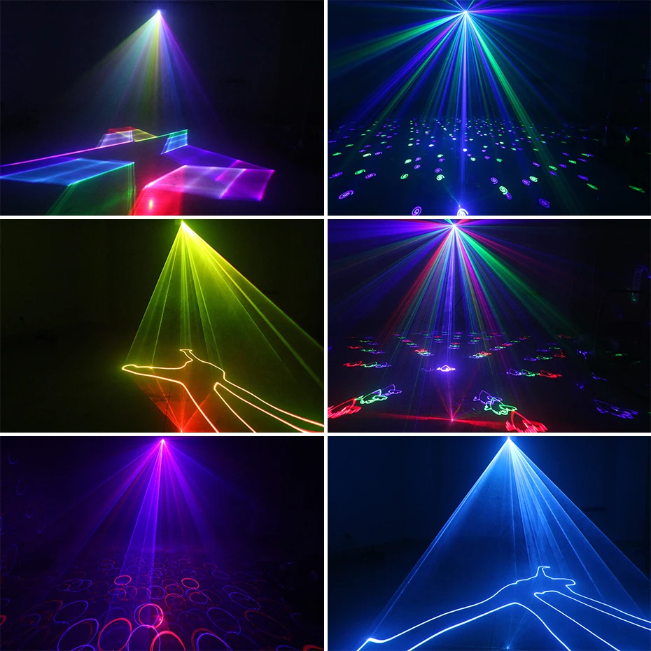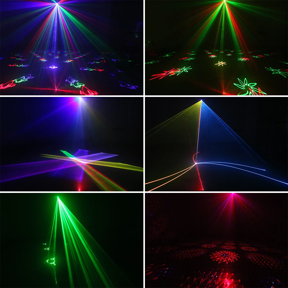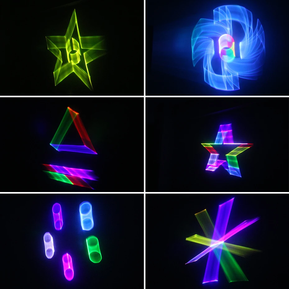 Efecto láser: varios haces, Figuras geométricas, animaciones, más de 50 tipos de efectos.