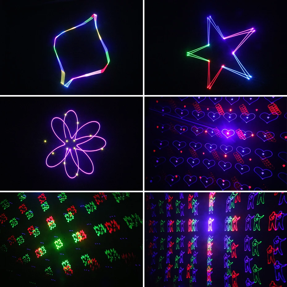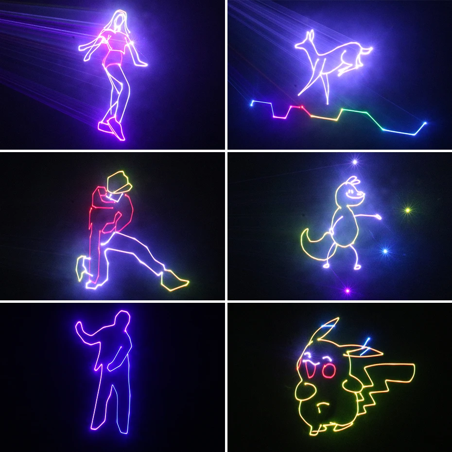 Efecto láser: varios haces, Figuras geométricas, animaciones, más de 50 tipos de efectos.