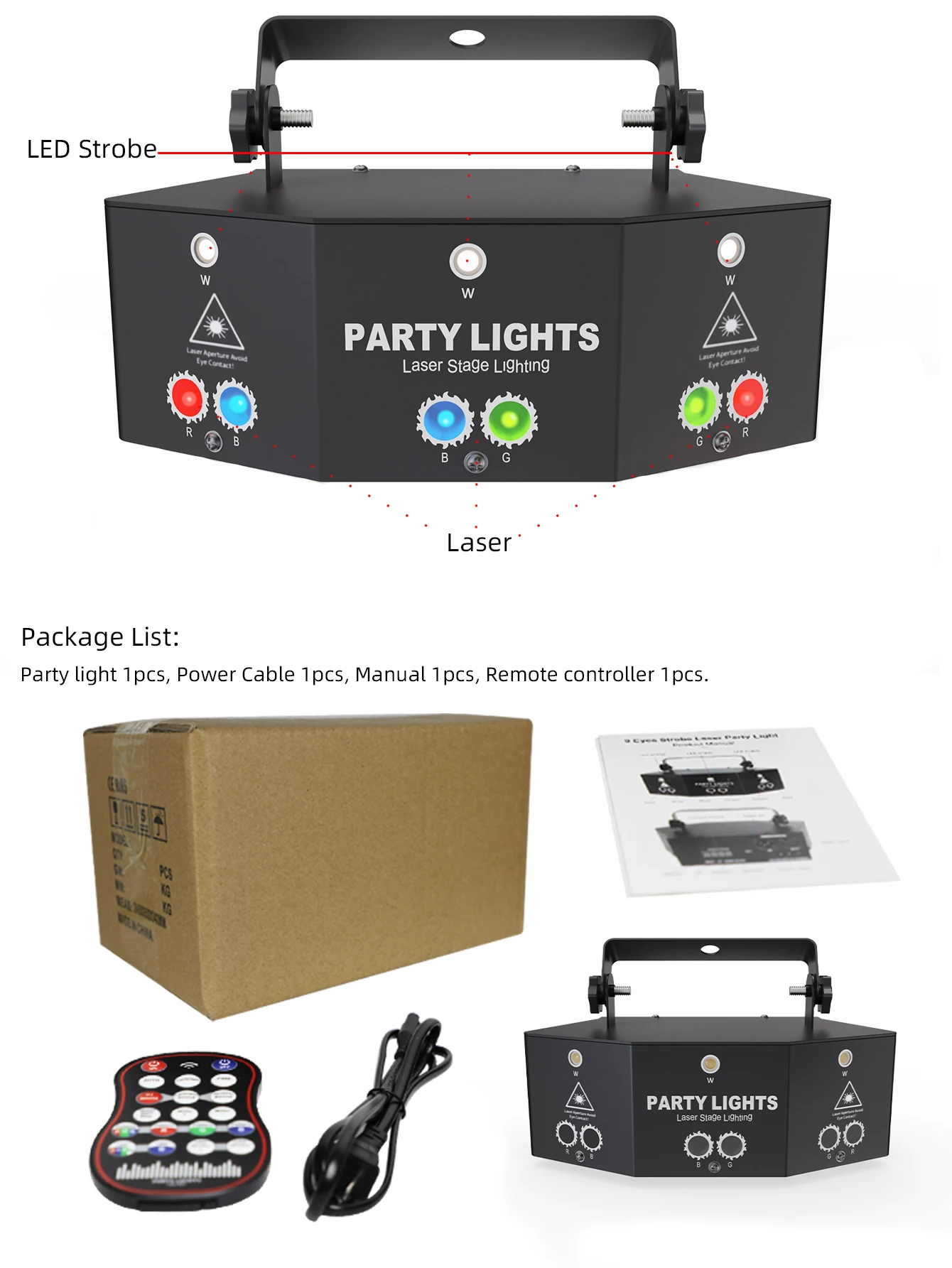 Láser RGB de 9 agujeros + estroboscópico blanco