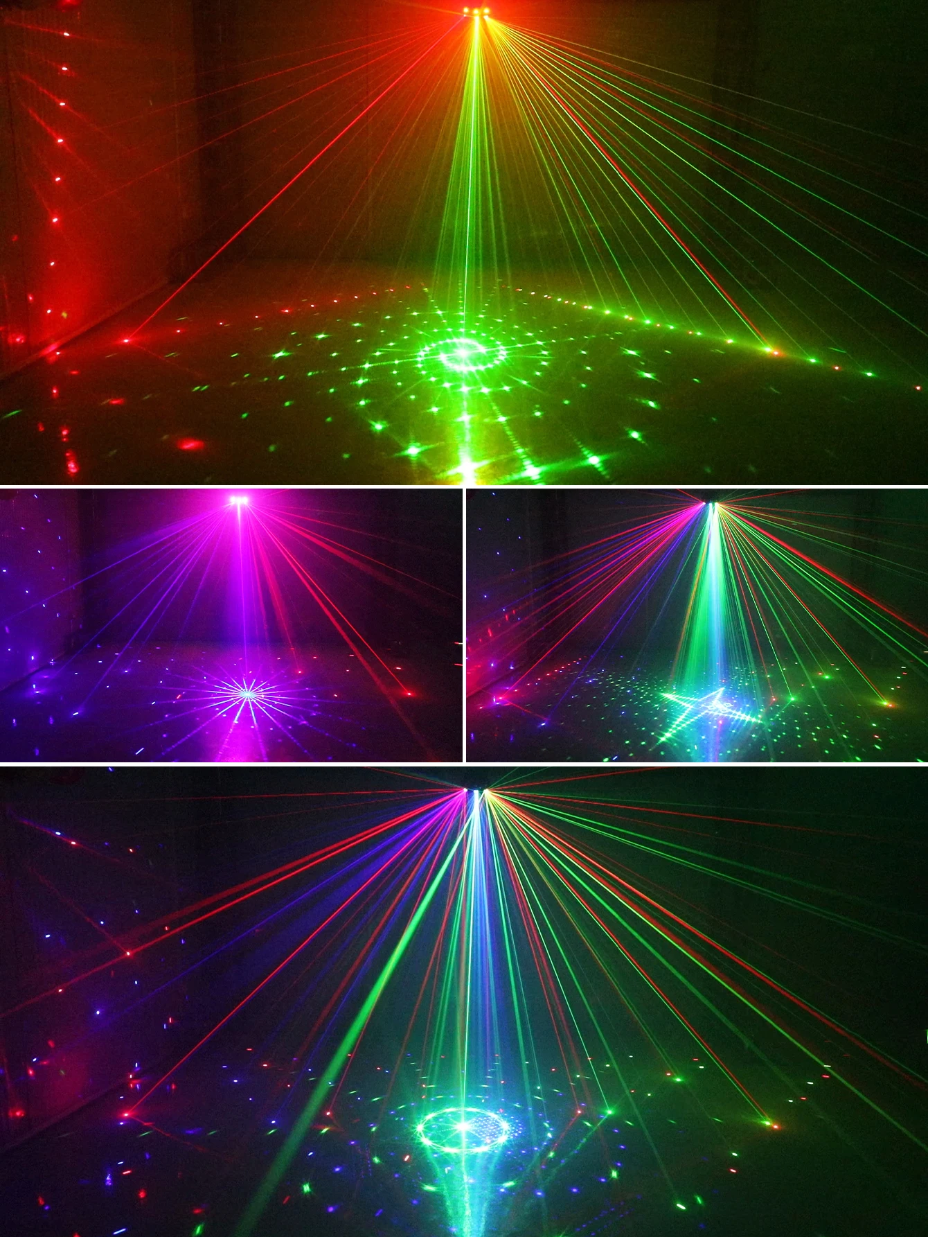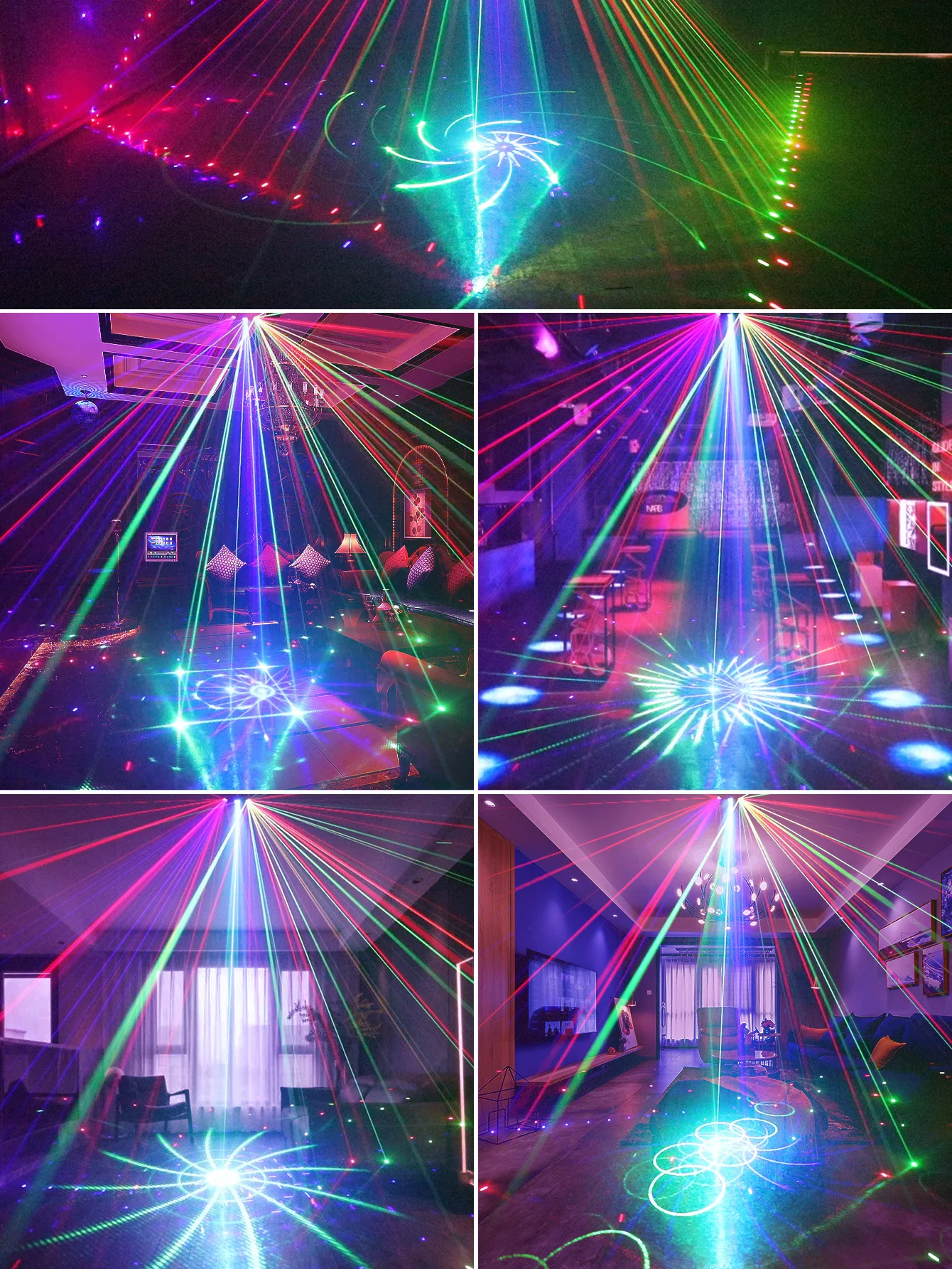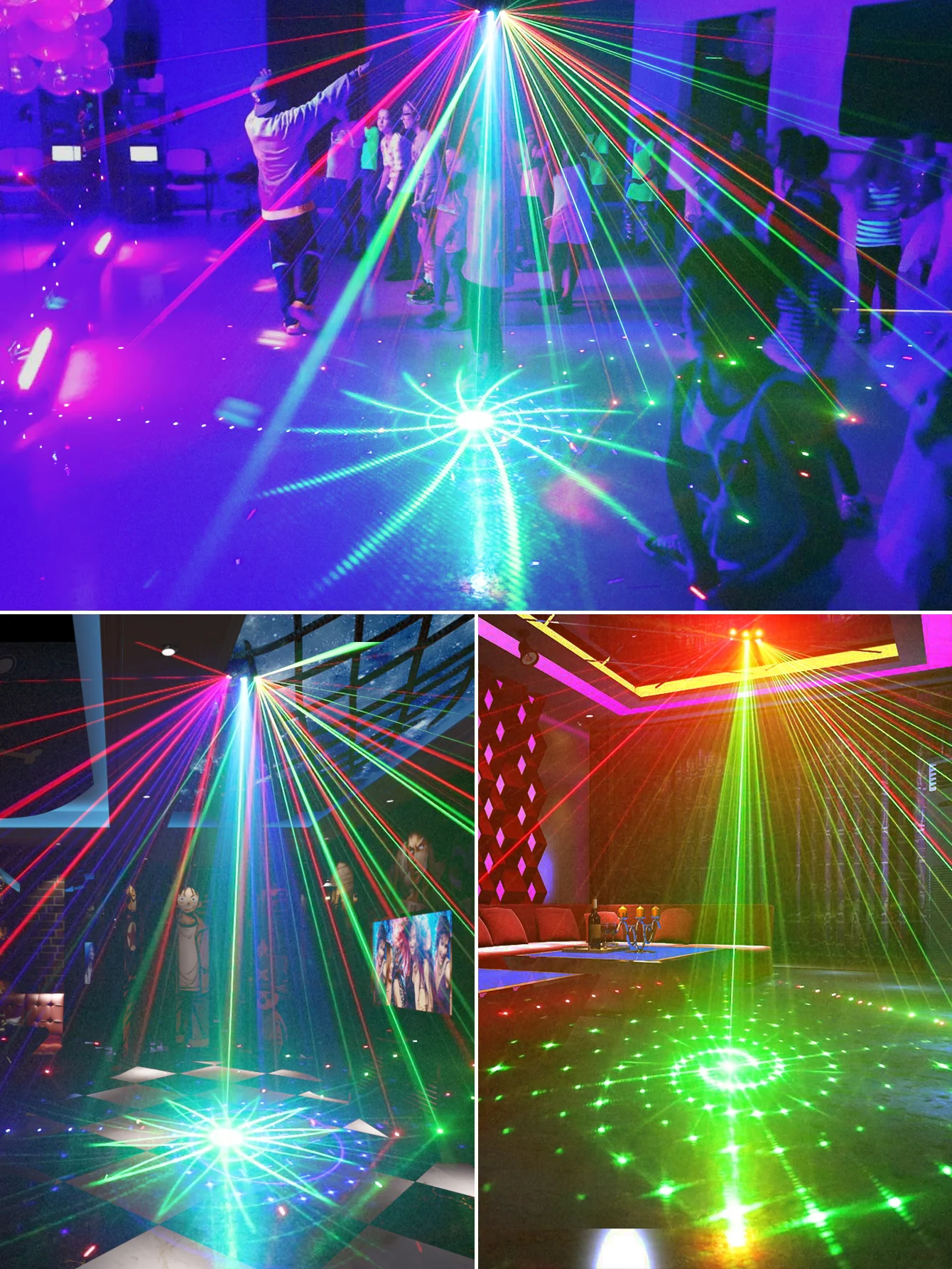 1. una atmósfera Crea feliz: la luz tiene función láser + patrón + estroboscópica, llena de dinámica. Es increíble, creando un ambiente feliz para la familia y las fiestas.
