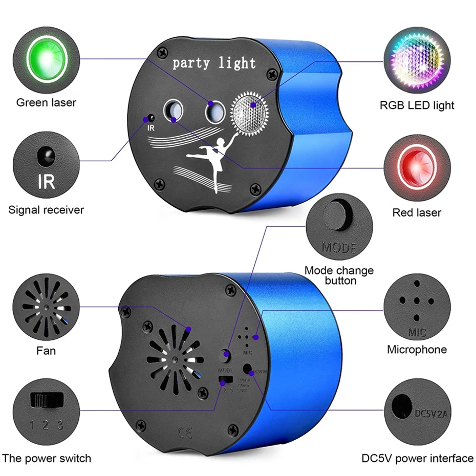 Modos de trabajo: el proyector se puede operar con un control remoto o manualmente con el interruptor ubicado en la parte posterior de la luz de fiesta.