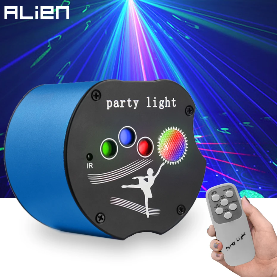 Comprar ALIEN-proyector de luz láser RGB con Control remoto, dispositivo con 64 patrones para DJ, discotecas, escenarios, fiestas, bailes, bodas, sonido USB