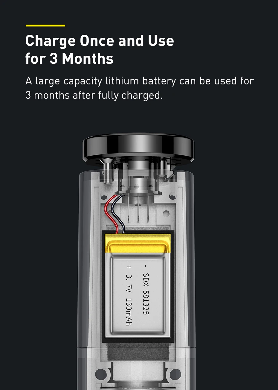 • Batería recargable :Con una batería recargable, el Probador de alcohol sin contacto portátil Baseus se puede utilizar varias veces sin necesidad de reemplazar las baterías, por lo que es una opción más rentable.